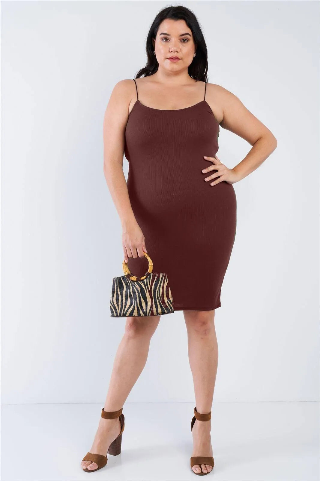 Dress Features: Spaghetti strap, ribbed knit, midi length, non-adjustable, unlined, stretchy