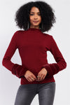 🖤 Item Features: Burgundy, solid, ribbed knit construction, semi-turtleneck, long sleeve with detachable snap button muff inspired faux fur cuff, unlined, super stretchy, fitted, casual, stylish, accent detail, trendy, business casual, chic, fall/winter collection
