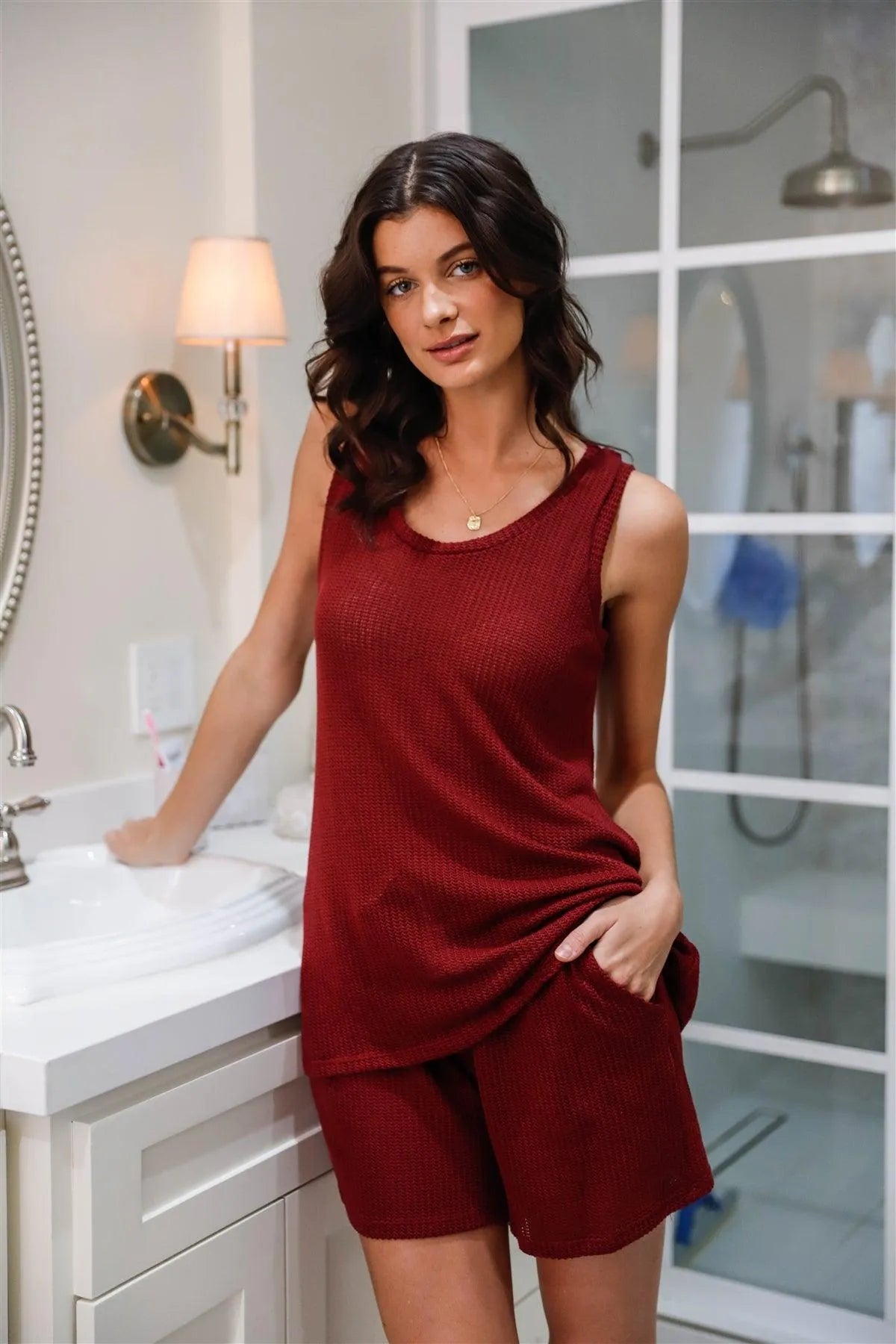 Burgundy Knit Tank Top & Shorts Loungewear Set