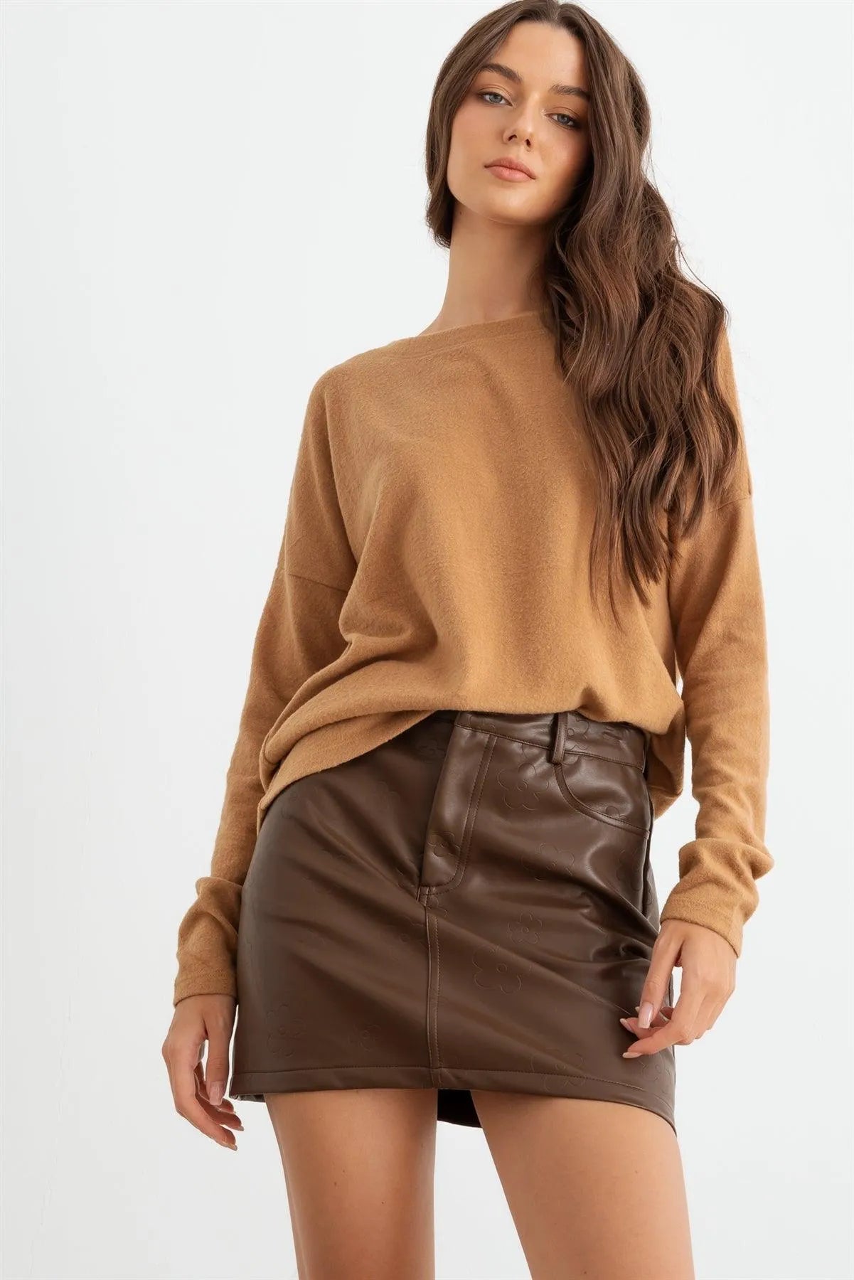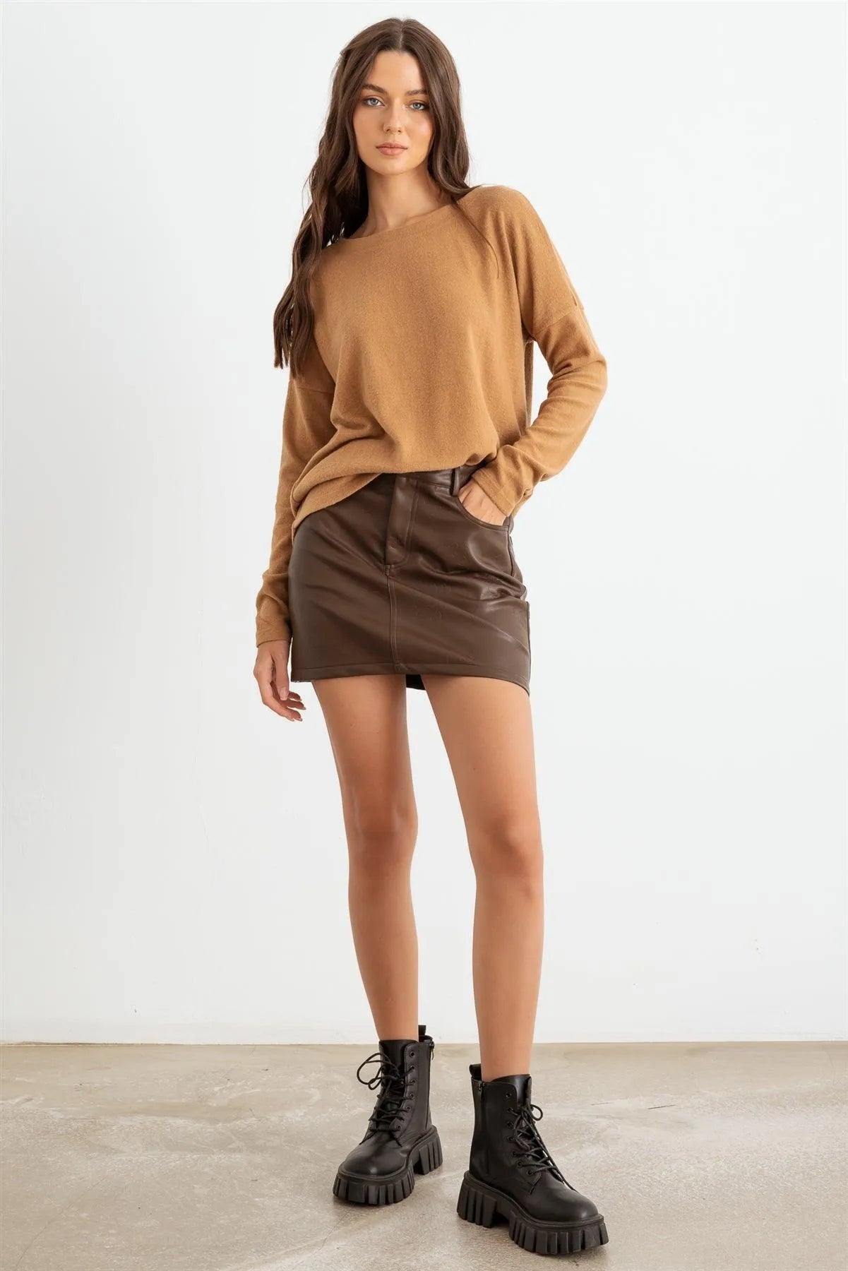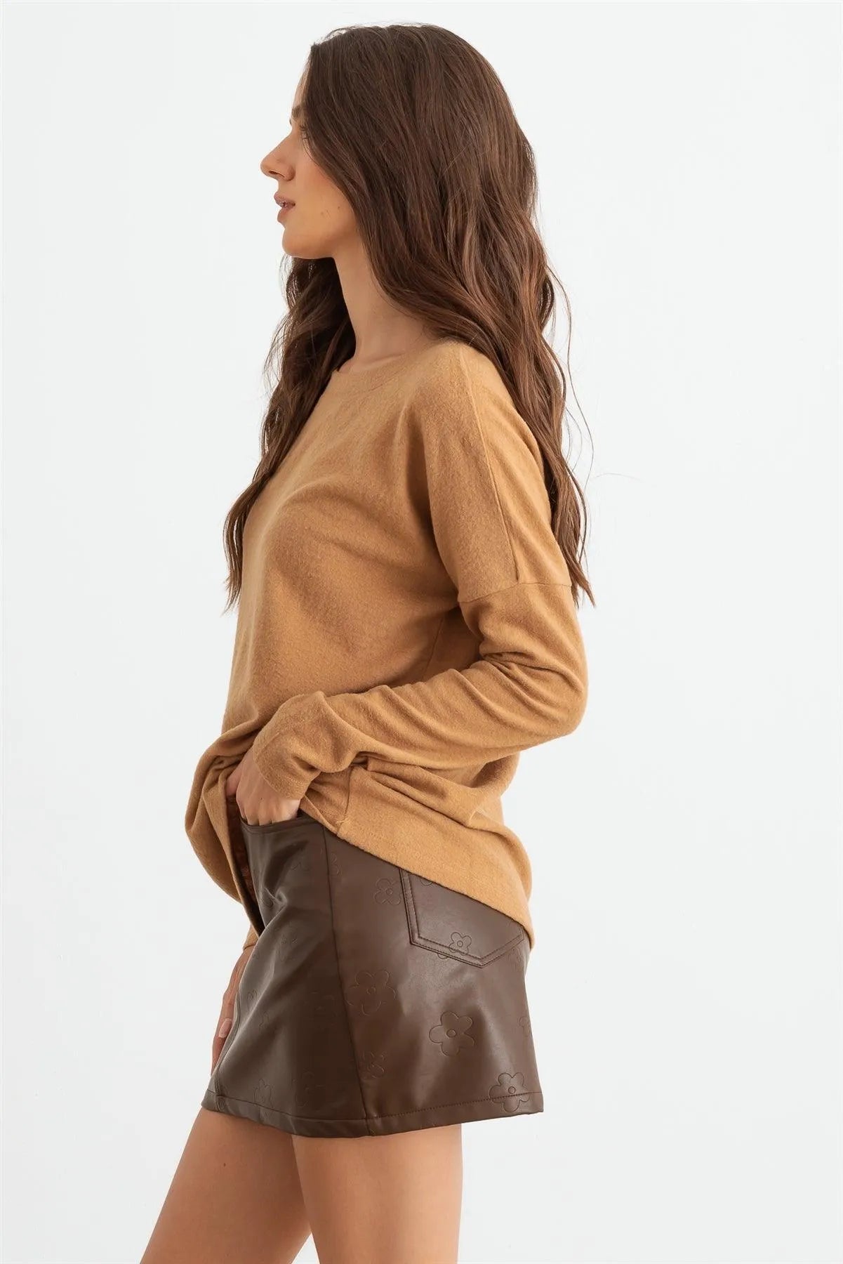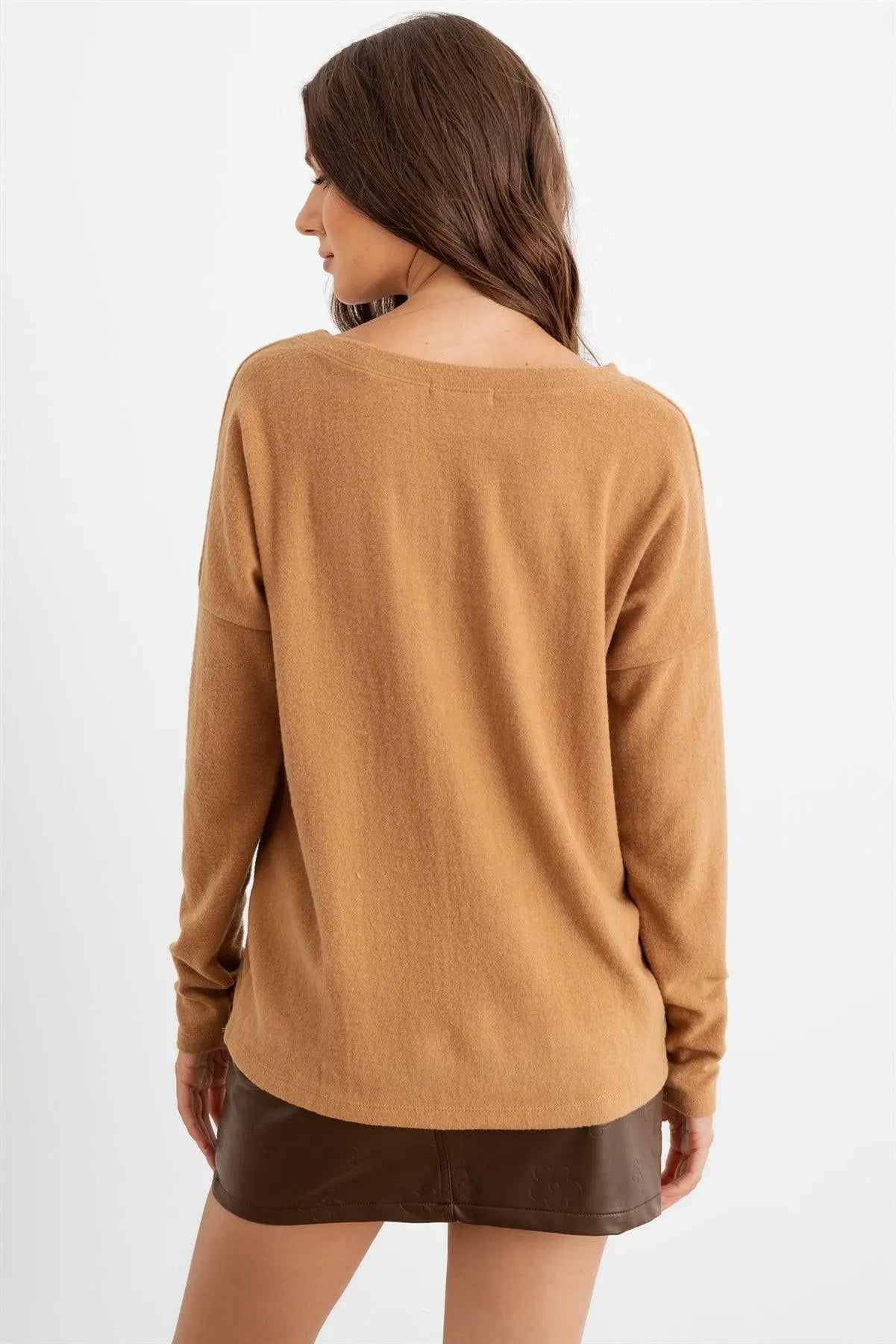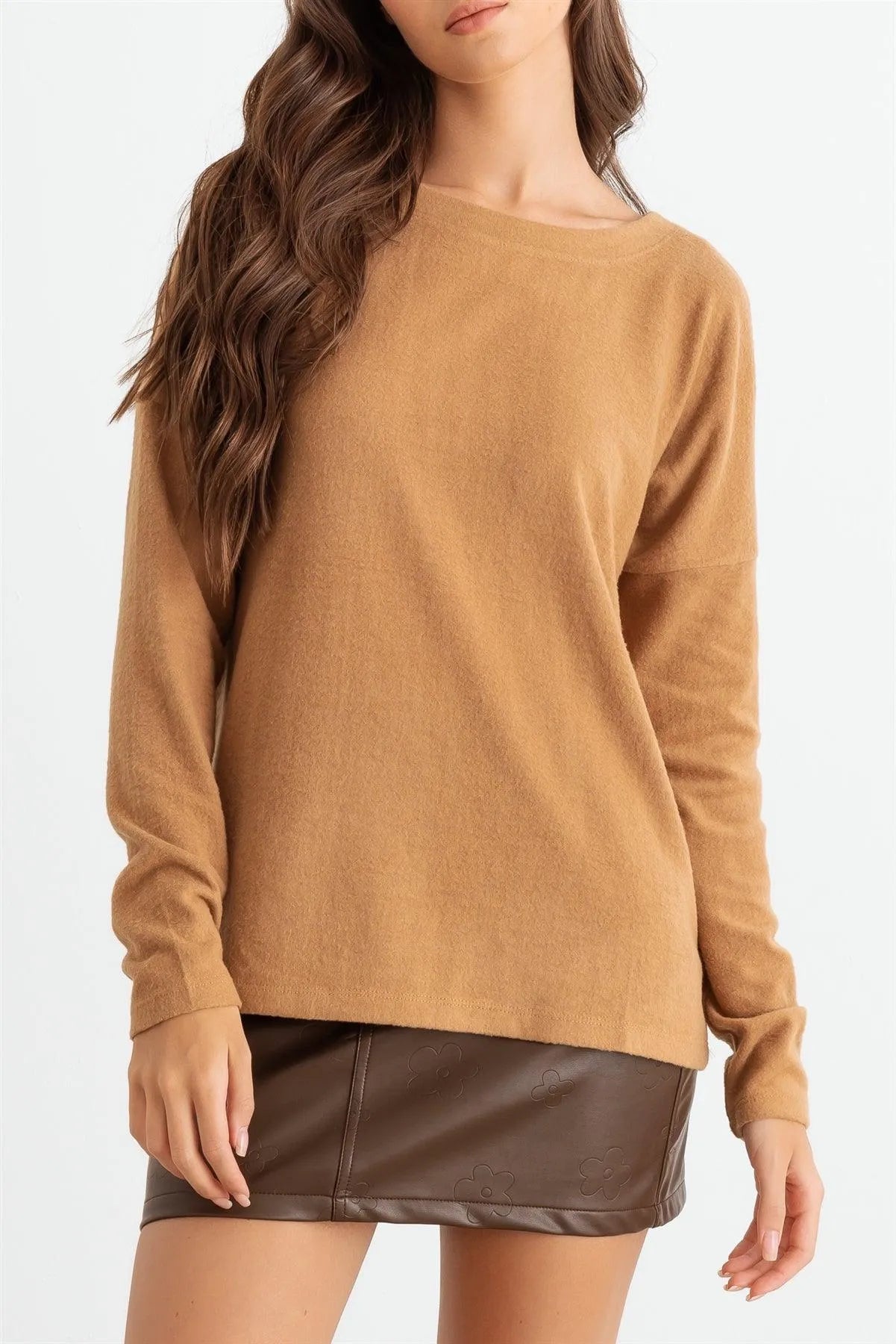 Camel Long Sleeve Crew Neck Soft To Touch Top /1-1-1