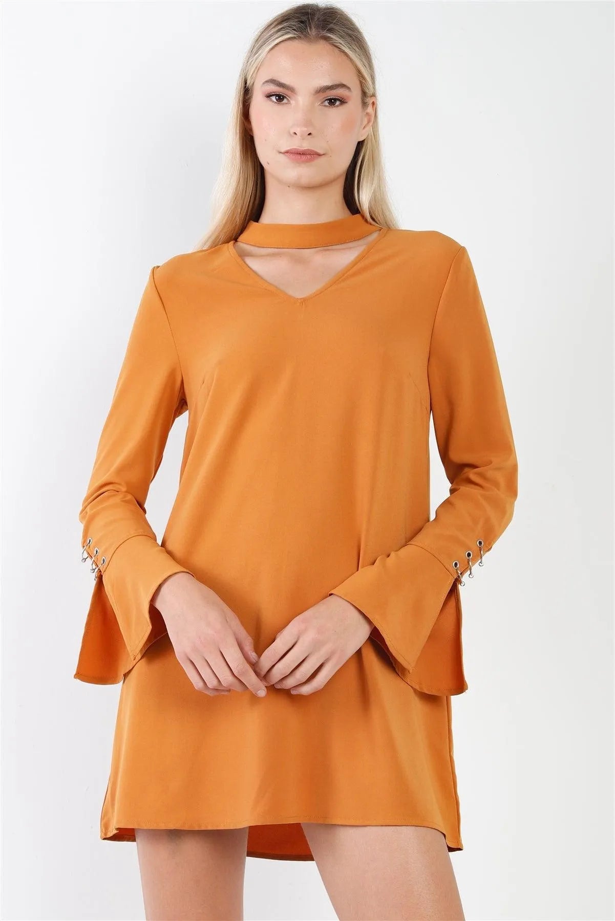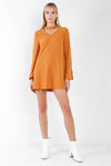 Camel Long Sleeve V-Cut Out Solid Mini Dress /2-2-2