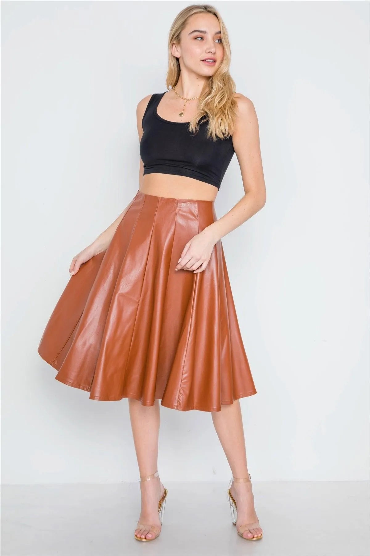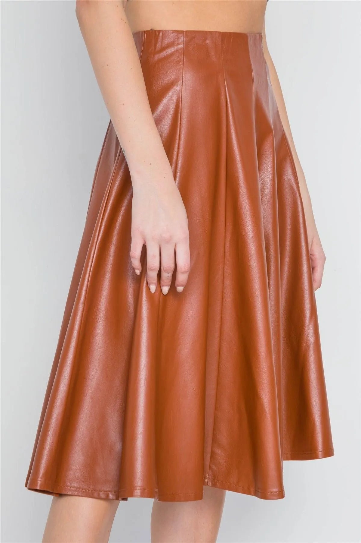 Camel Vegan Leather A-Line High-Waist Skirt