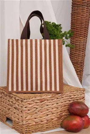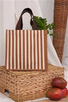 Caramel Ivory Striped Structured Fashionable Tote Bag