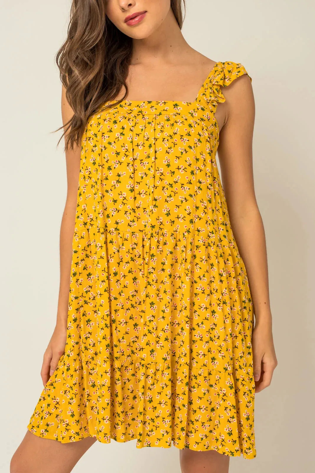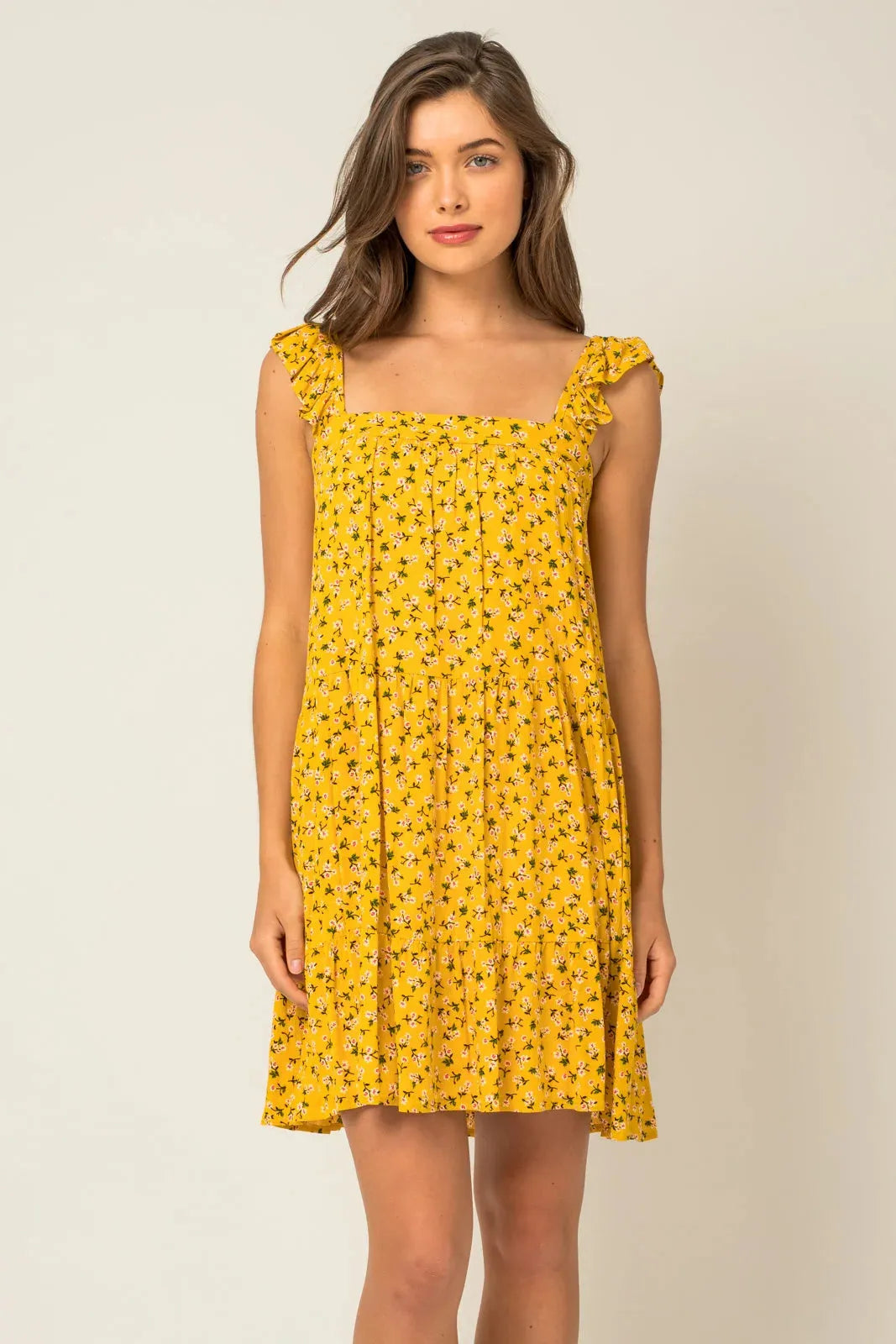 Ruffle Shoulder Square Neck Ditsy Mini Dress
