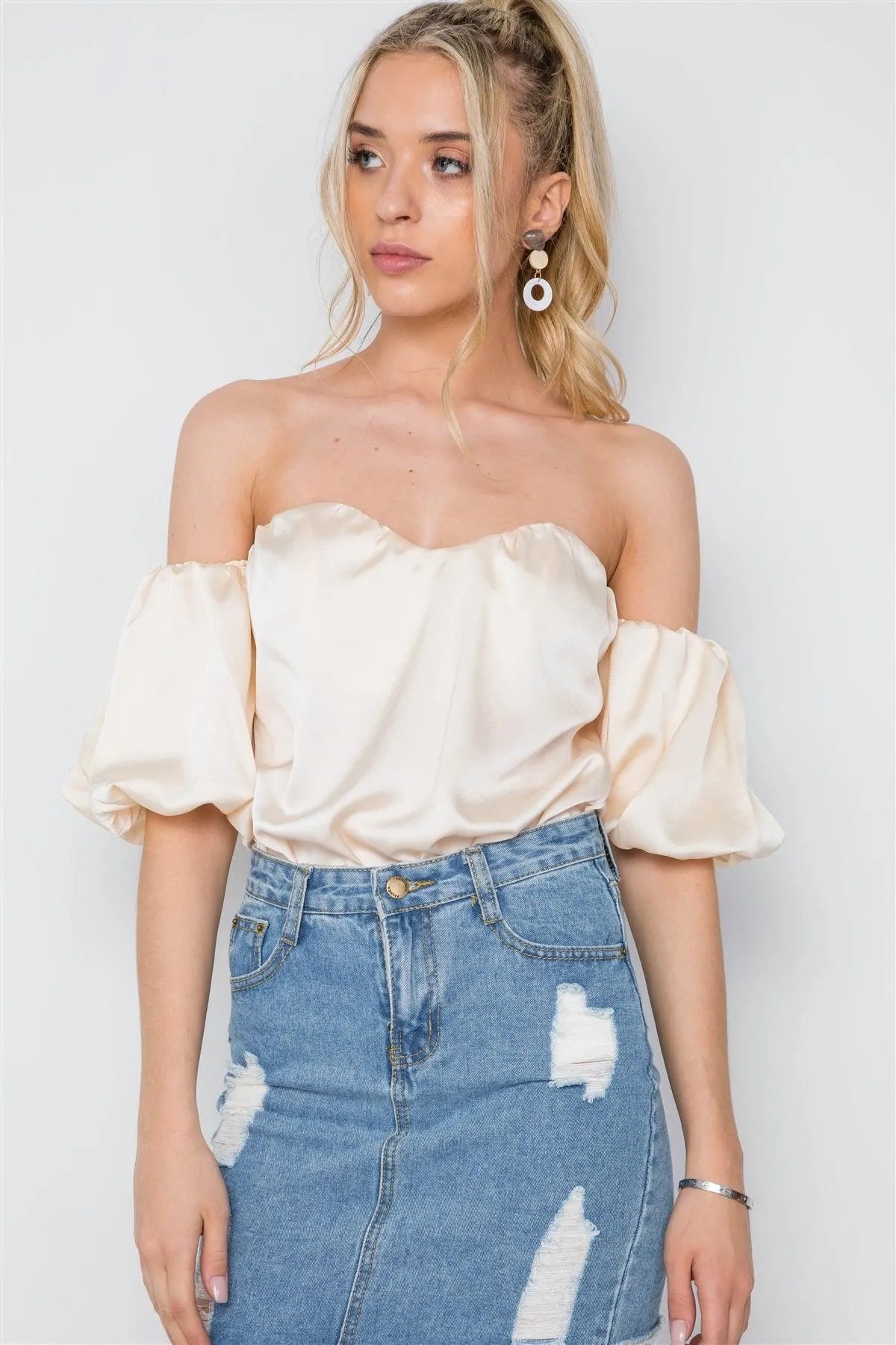 Champagne Off-The-Shoulder Sweetheart Bodysuit /2-1-2