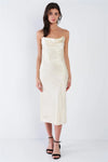 Champagne Yellow Silk Cowl Neck Raw Hem Midi Summer Dress /3-2-1