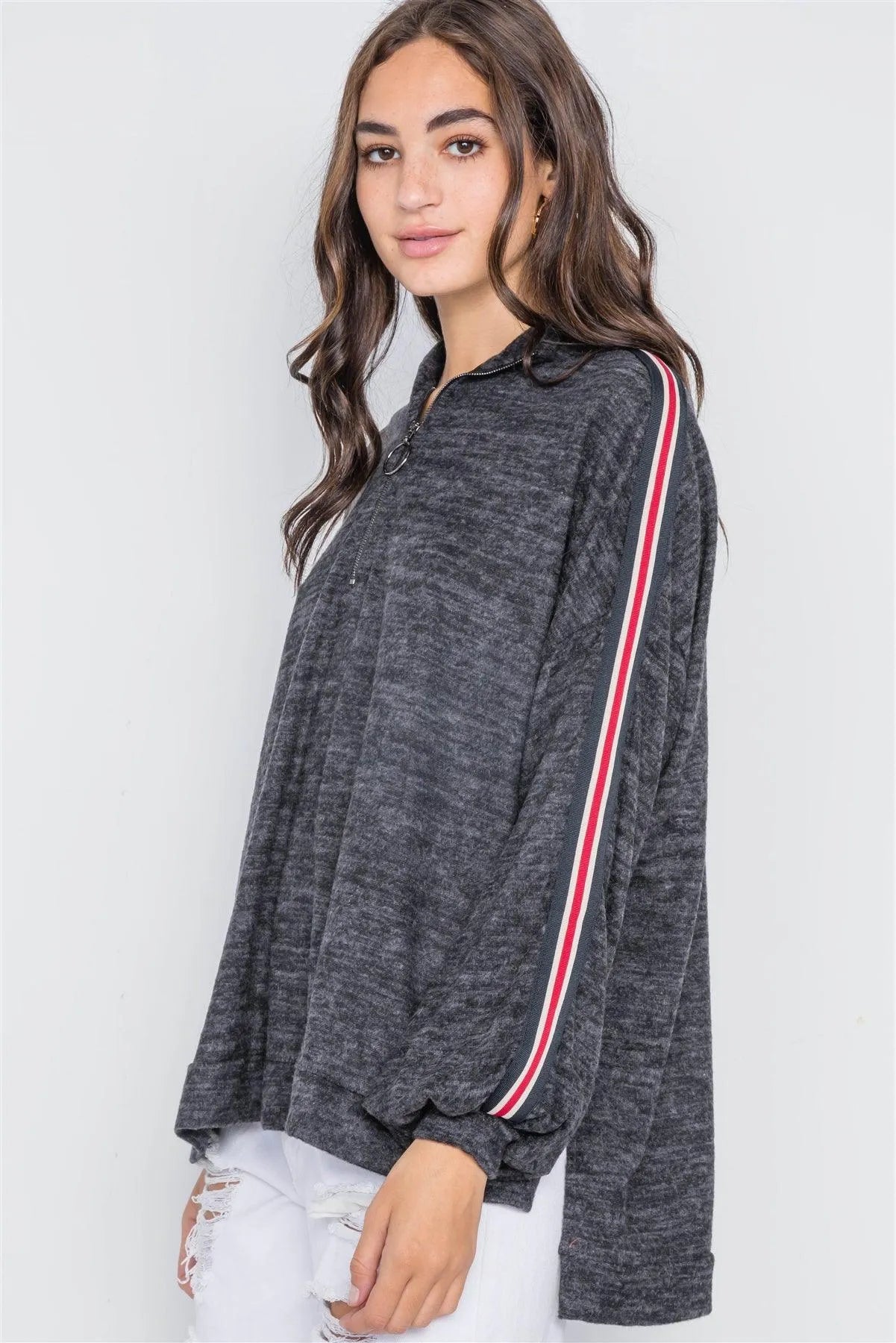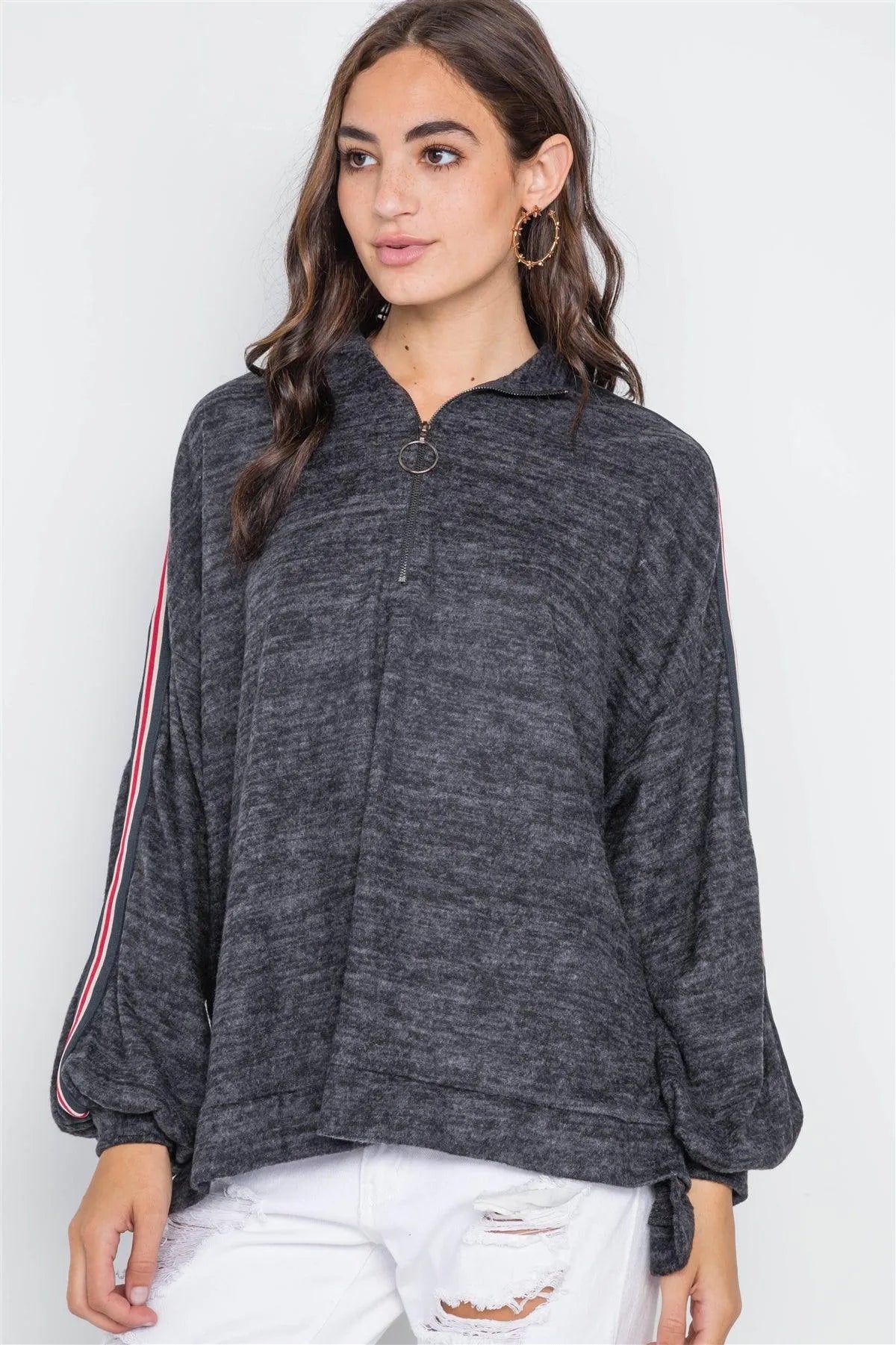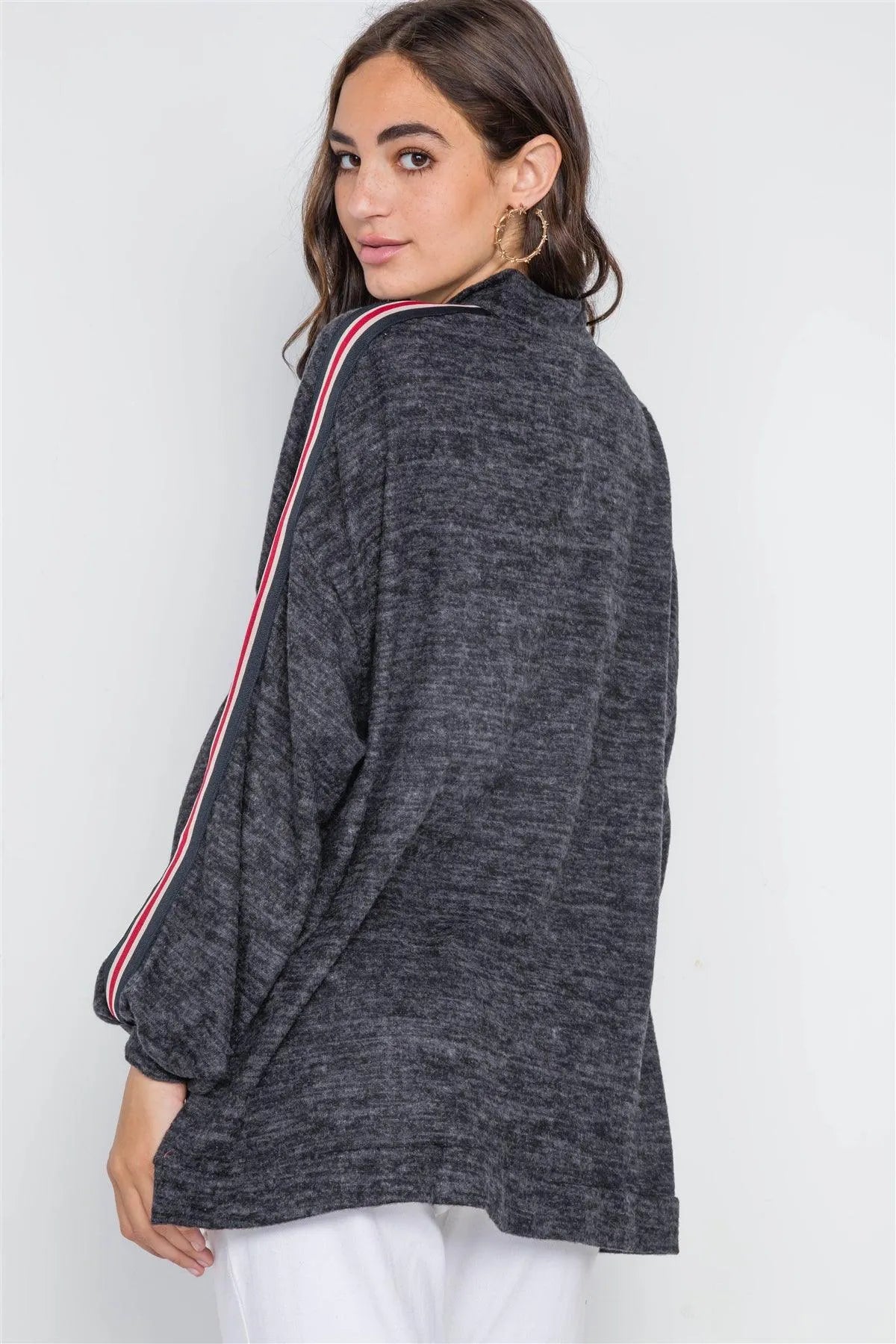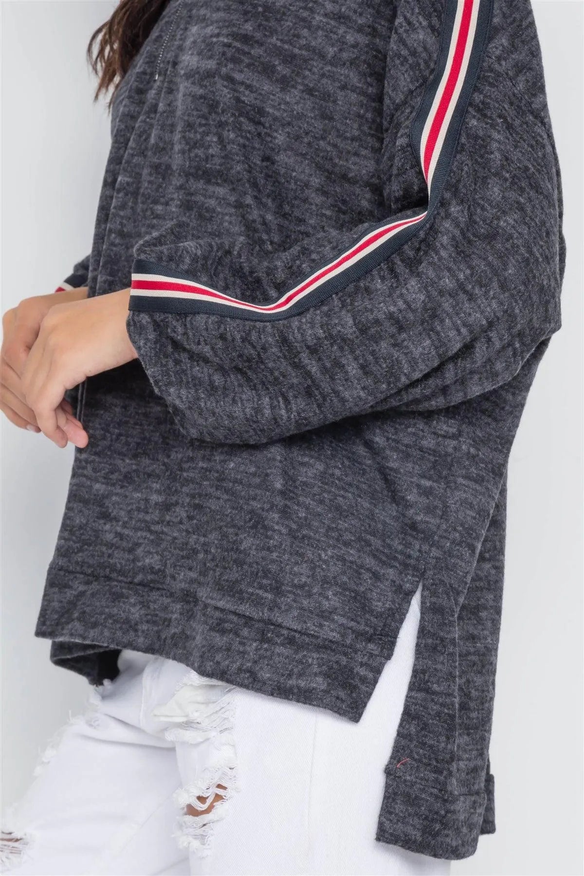 Charcoal Contrast Trim Stripe Sleeves Sweater /2-2-2
