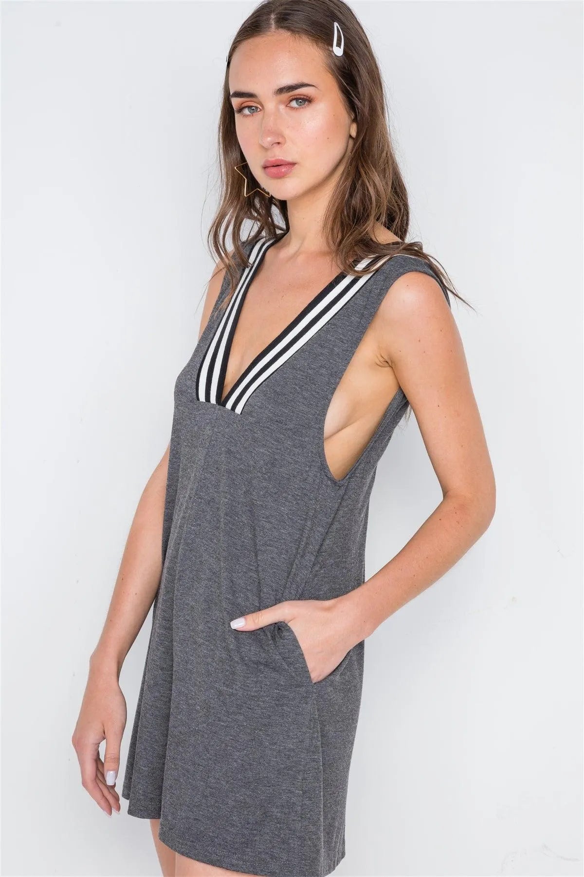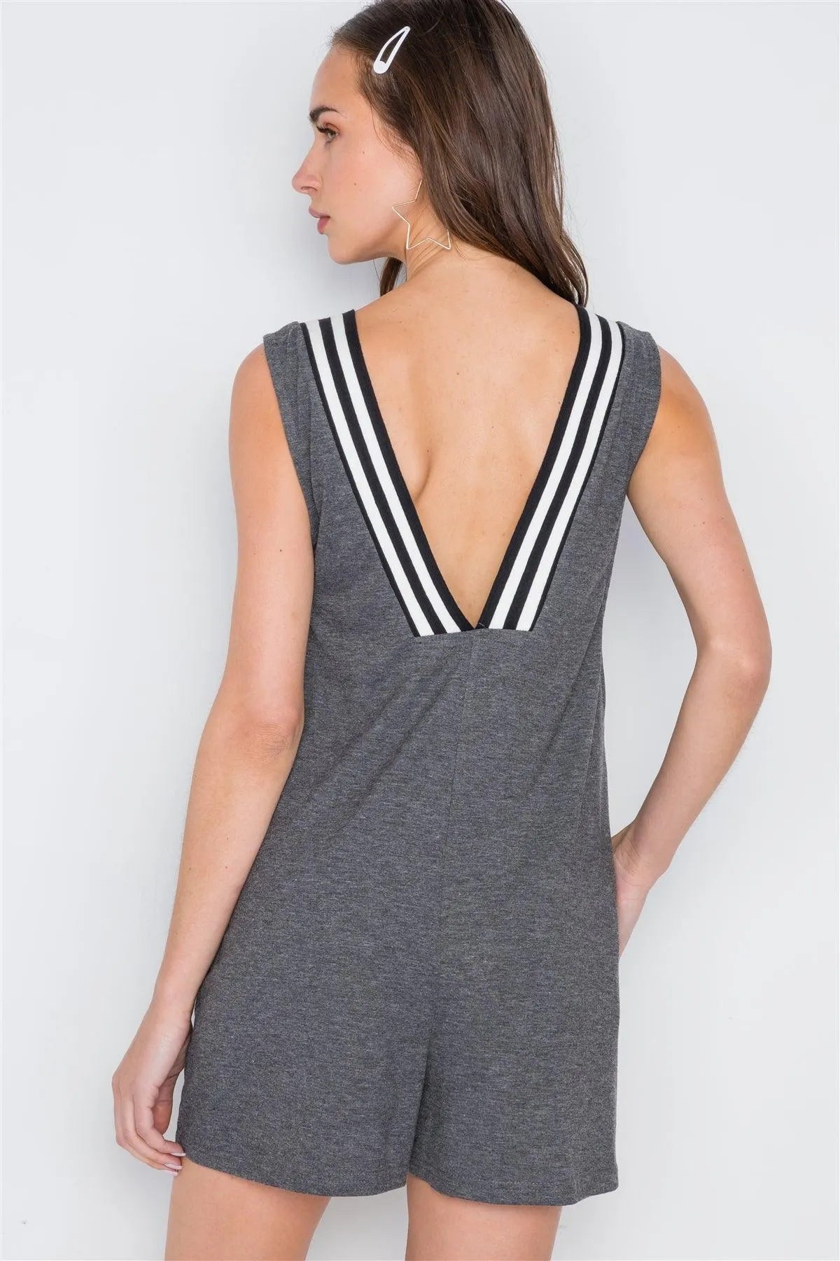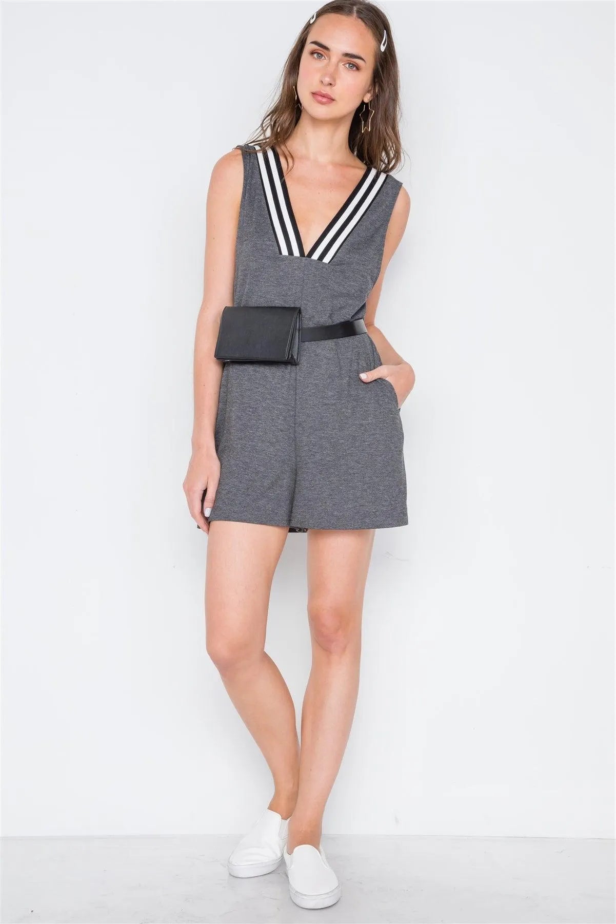 Charcoal Contrast V-Neck Loose Fit Romper /1-3-3