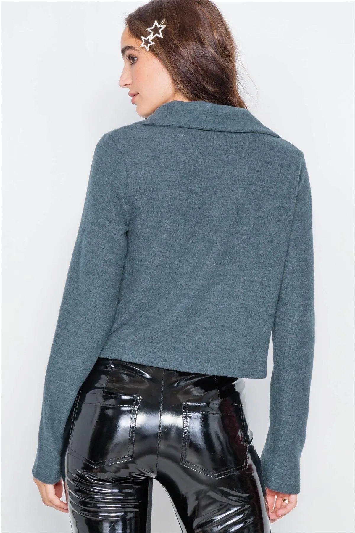 Cropped V-Neck Long Sleeve Soft Knit Cozy Boutique Fashion SweaterVendor:DOUBLE ZERO
