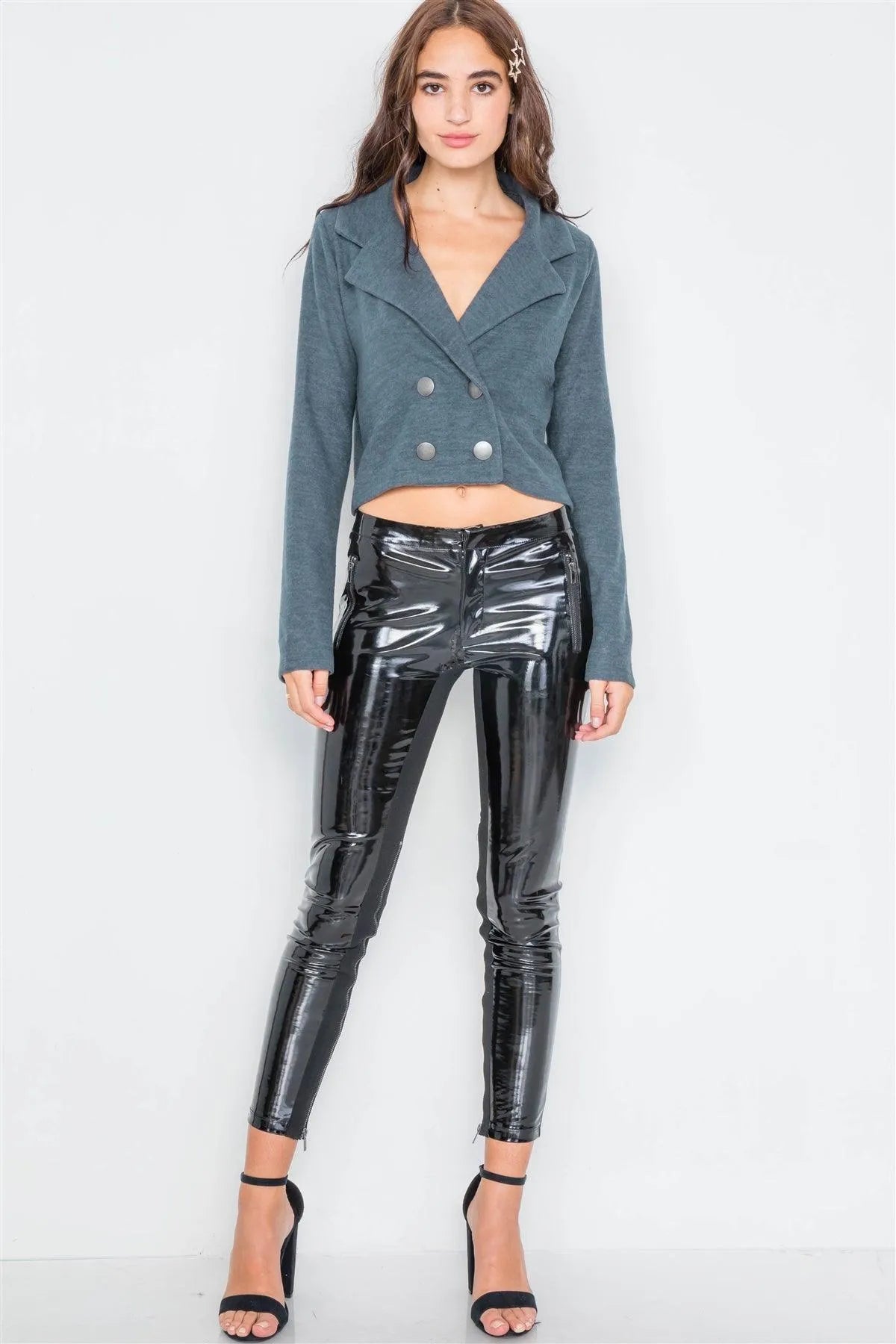 Charcoal Double Breasted Peacoat Crop Jacket /2-2-2