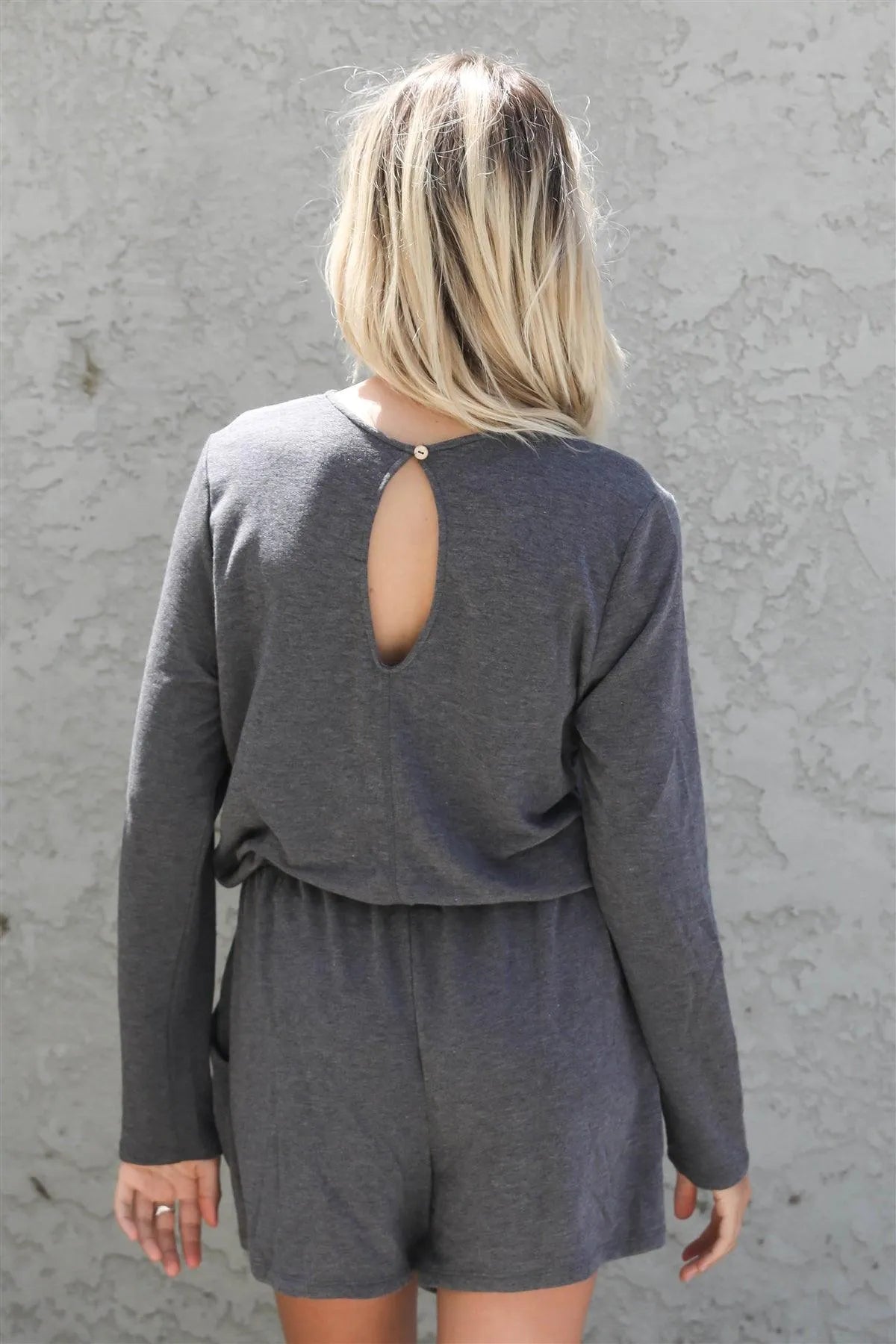 Charcoal Jumpsuit Long Sleeve Adjustable Drawstring Romper /1-1-1