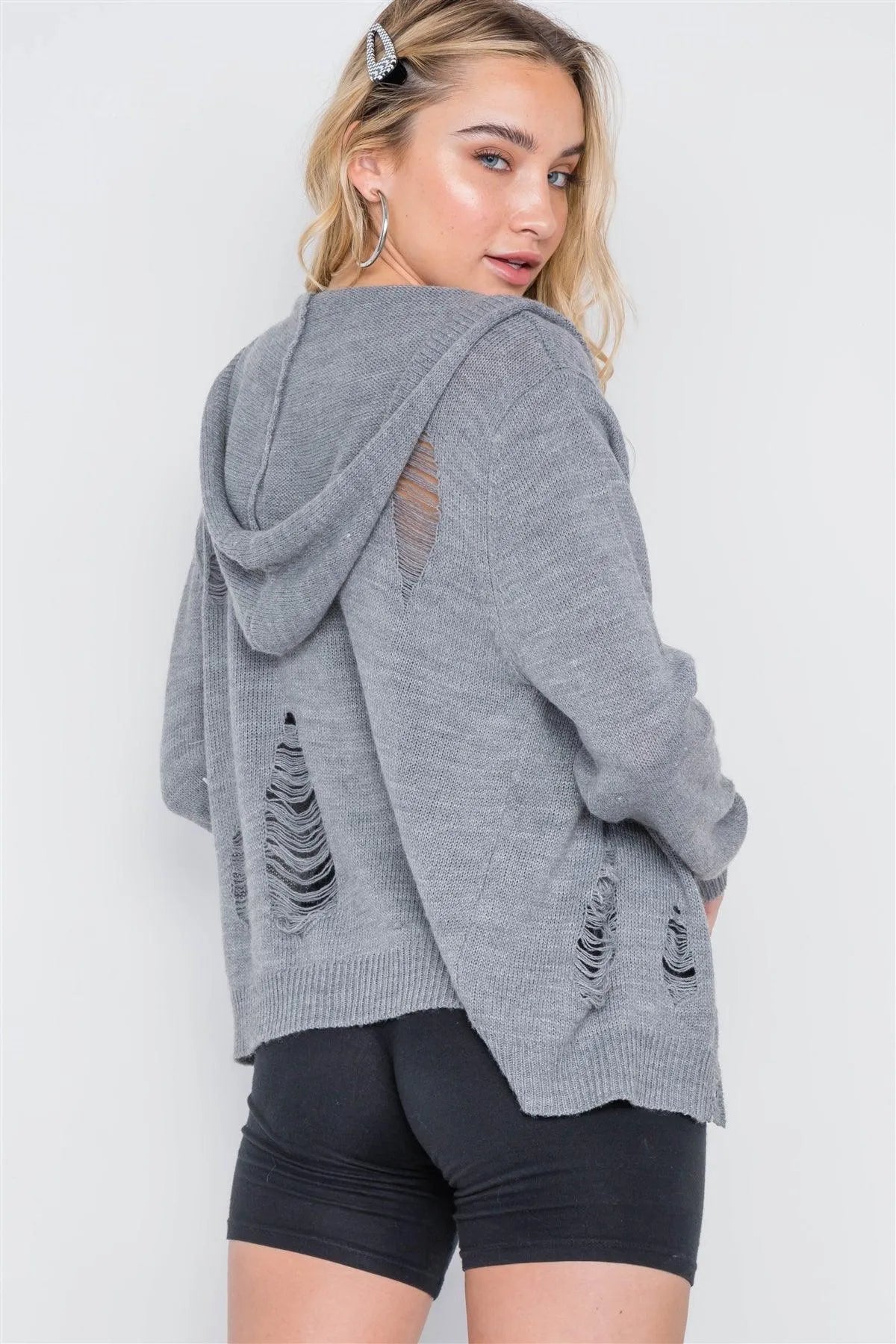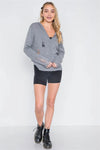 Charcoal Knit Distressed Hooded Button-Front Sweater /1-2-2