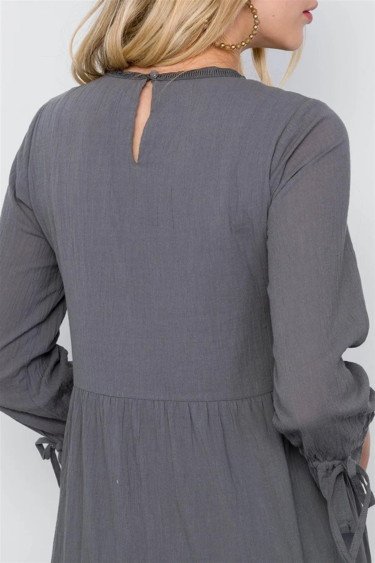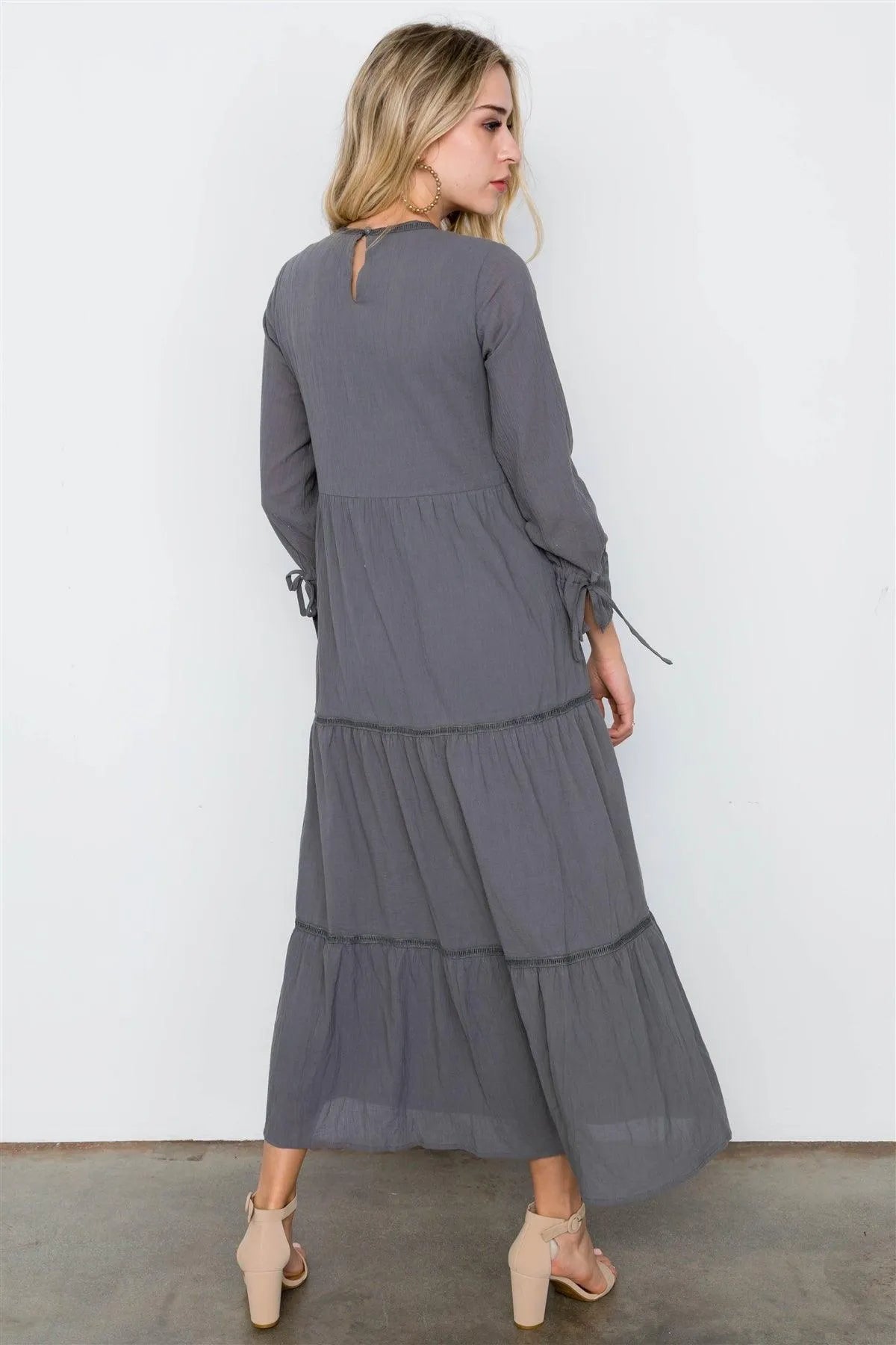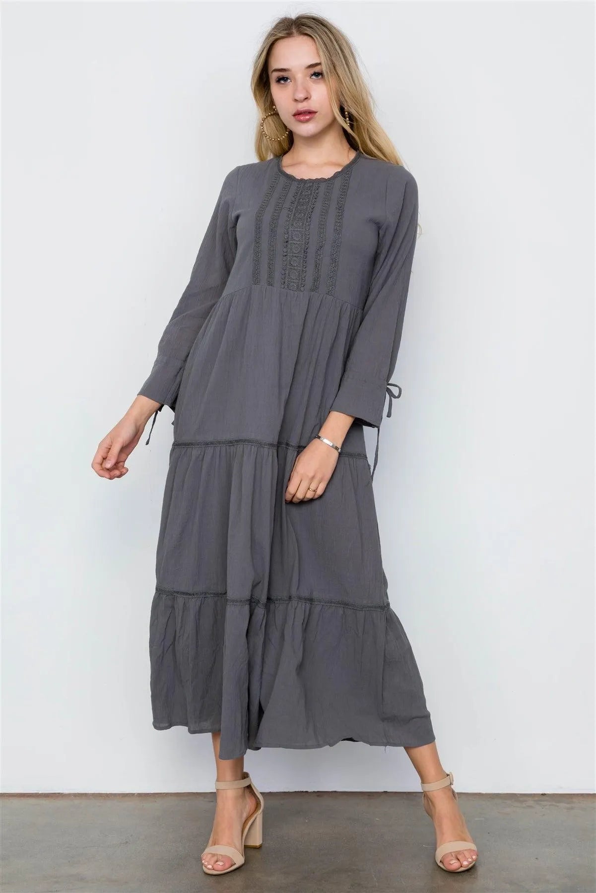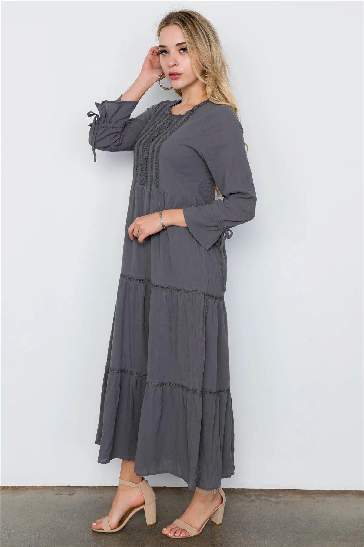 Charcoal Long Sleeve Maxi Boho Cotton Dress / 2-2-2