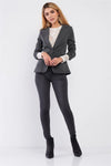 🖤 Item Features: Solid charcoal, 3/4 drawstring sleeve, one button front closure, notched collar, fitted, two sides sewn pockets, stretchy, lined, business casual, office wear, fall/winter season