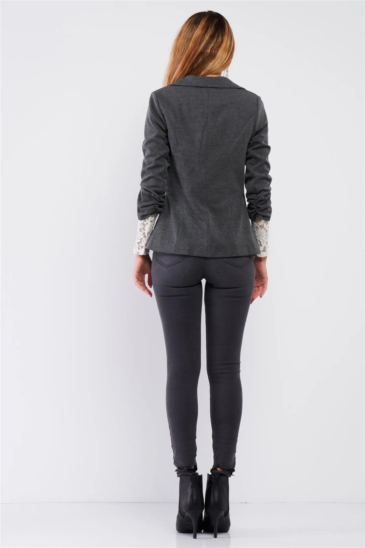 Charcoal 3/4 Drawstring Sleeve One Button Fitted Blazer /3-2-1