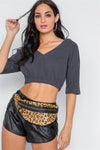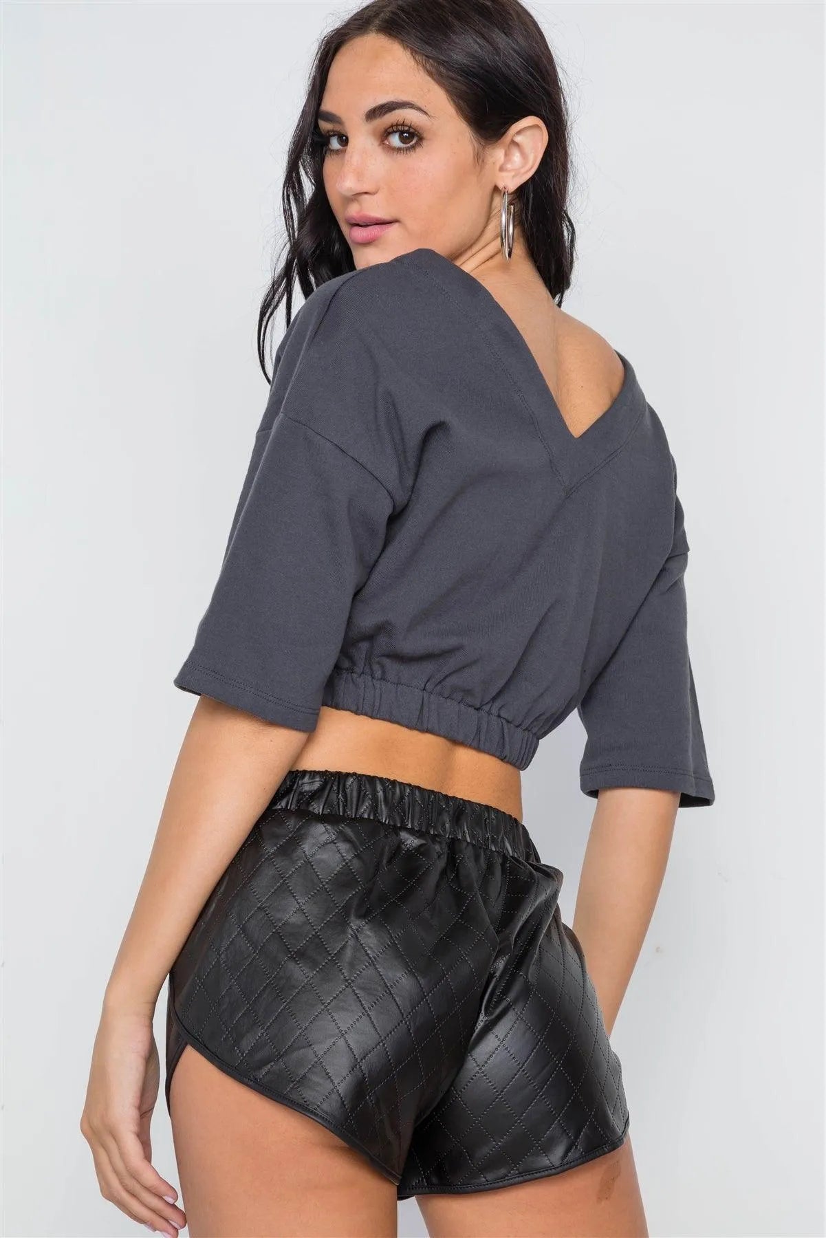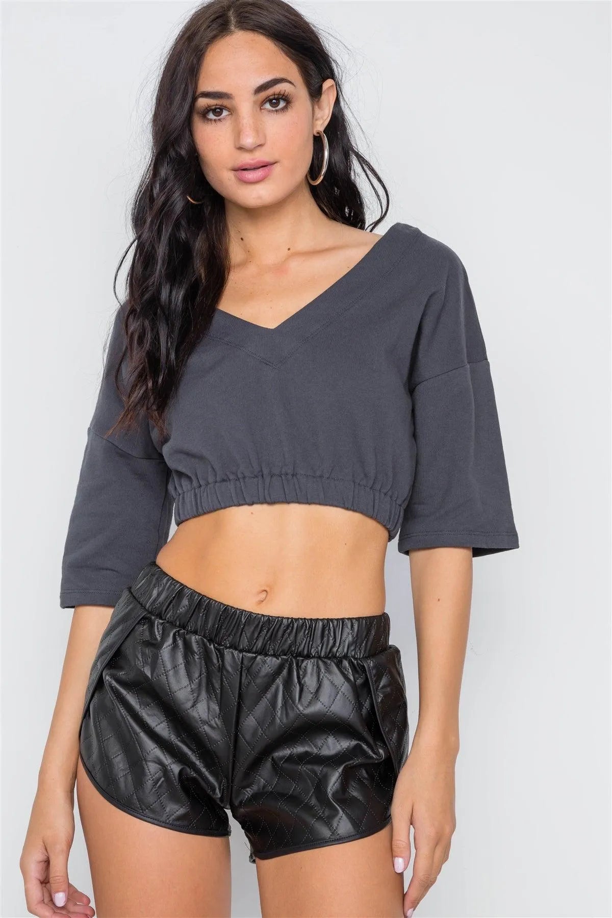 Charcoal 3/4 Sleeve V-Neck Knit Crop Top /3-2-1