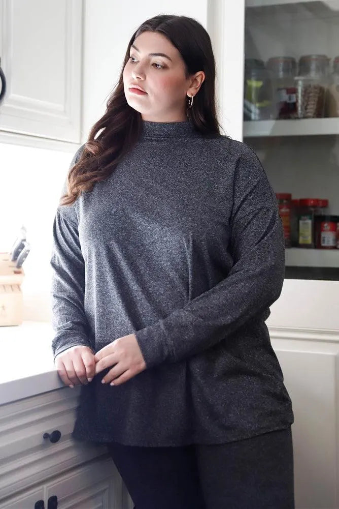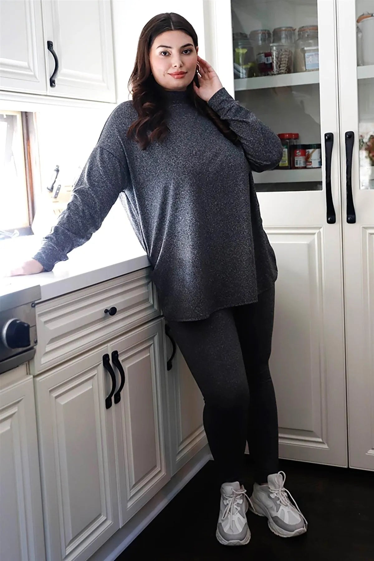 Charcoal Mock Neck Long Sleeve Top & High Waist Legging Pants Set /3-2-1