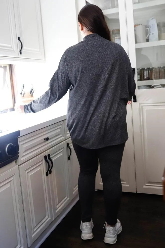 🖤 Item features: Charcoal, mock neckline, long cuffed sleeves, dropped shoulders, relaxed fit, high waist legging pants, elasticized waistline, slim fit, unlined, semi-stretchy, comfy, loungewear, cozy, basic, activewear, street style