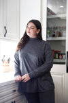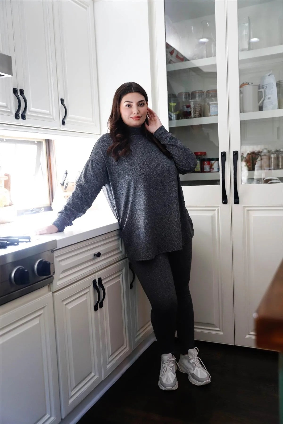 Charcoal Mock Neck Long Sleeve Top & High Waist Legging Pants Set /2-2-2