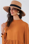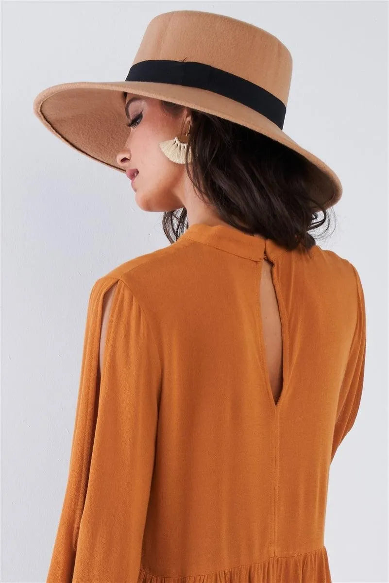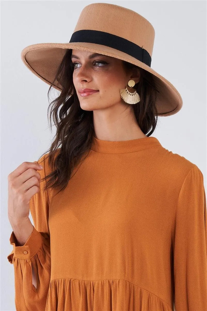 Tan Felt Wide Brim Hat With Black Ribbon Band /3 Pieces