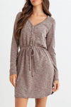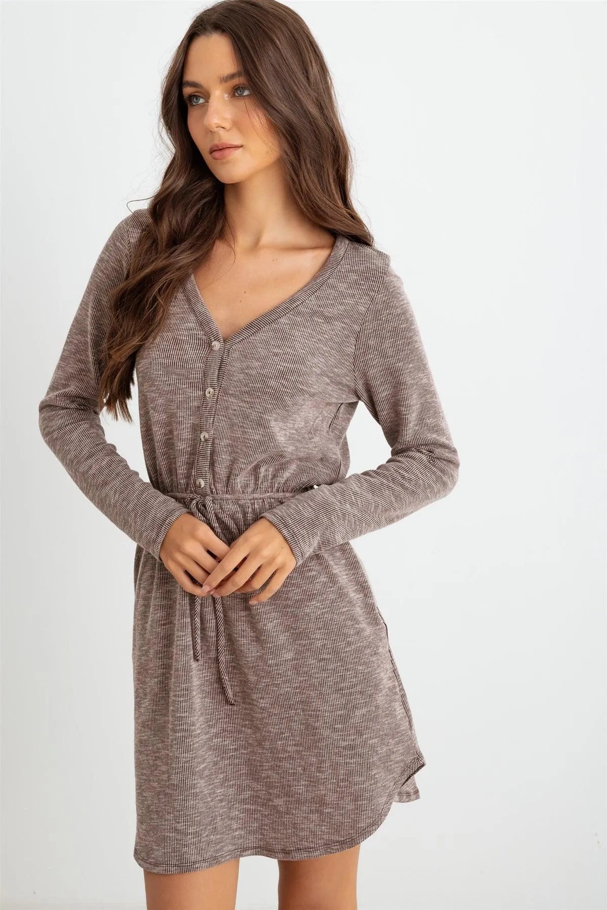 🖤 Item Features: Chocolate, ribbed, cotton blend, long sleeves, button-up v-neckline, elasticized waist with adjustable drawstring, two pockets, mini length, semi-stretchy, not see through, unlined, casual, cute, warm, cozy
