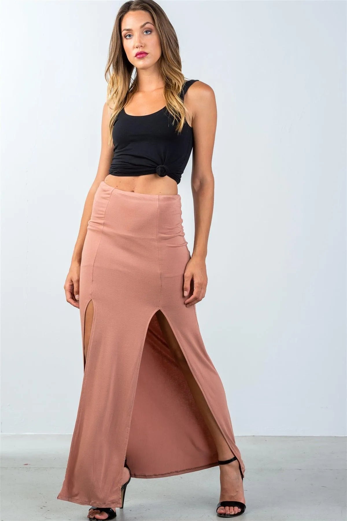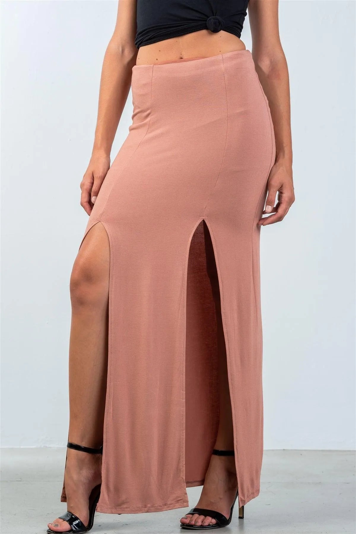 Cinnamon Double Slit High Waist Maxi Skirt /3-2-1