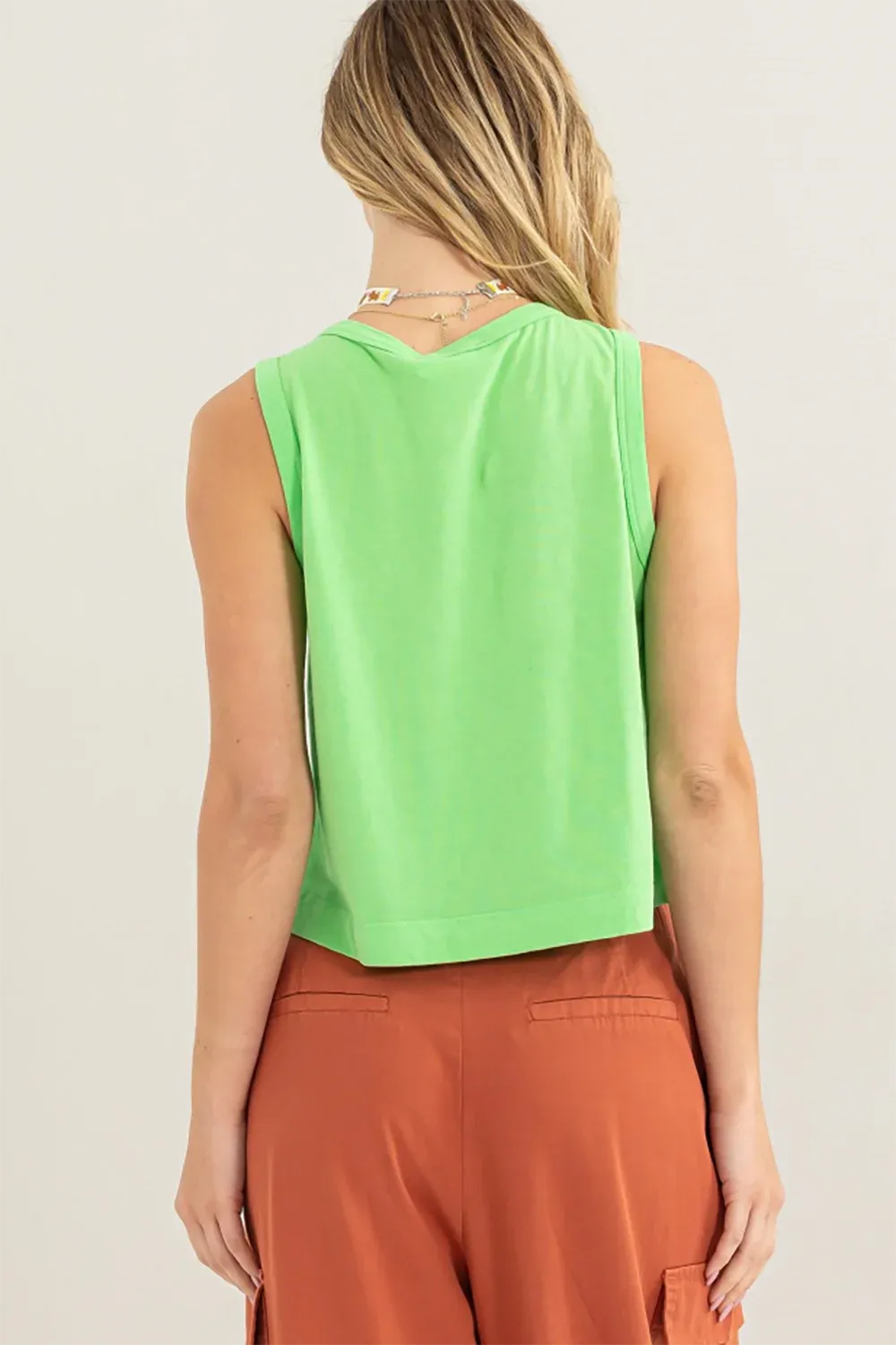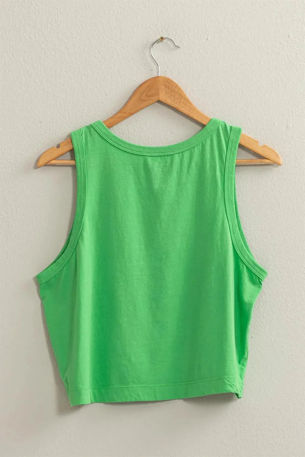 Brighten your boutique's summer collection with this eye-catching lime green crop tank. Made from soft, premium cotton, this versatile sleeveless top offers the perfect combination of comfort and style that your fashion-forward customers will love. The relaxed crop silhouette creates a youthful, trendy look perfect for the warm season ahead.