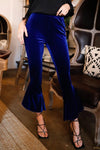 Cobalt Velvet Ruffled Flare High Waist Pants /2-2-1-1