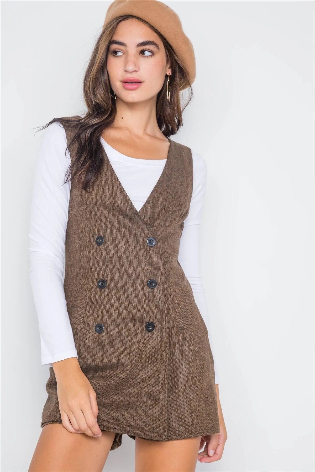 Coca Double-Breasted Sleeveless Skort Romper /3-2-1