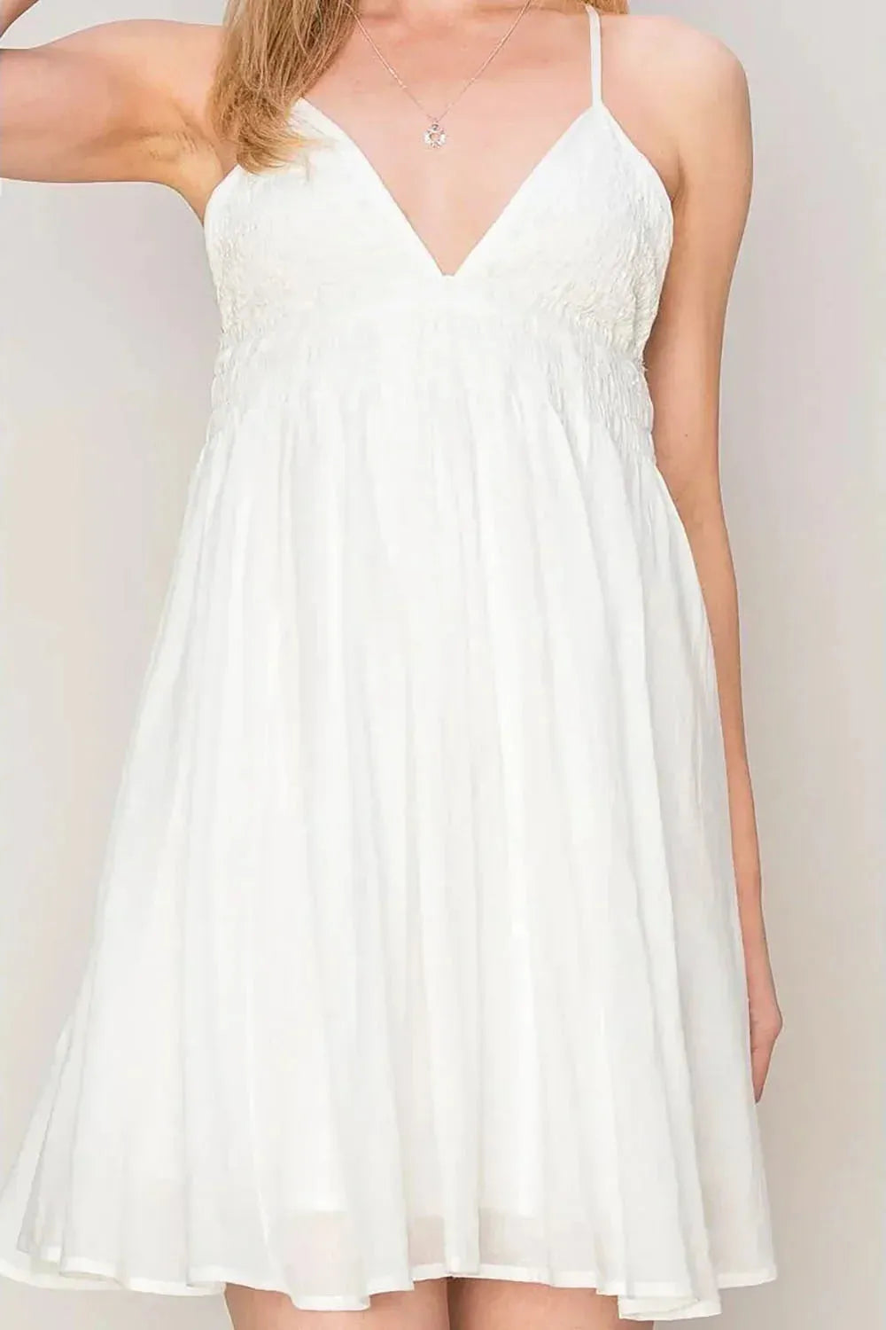 🖤 Features: Lightweight flowy fabric, adjustable spaghetti straps, v-neckline, smoked elastic waistband, full circle mini skirt, textured bust, inner lining for modesty