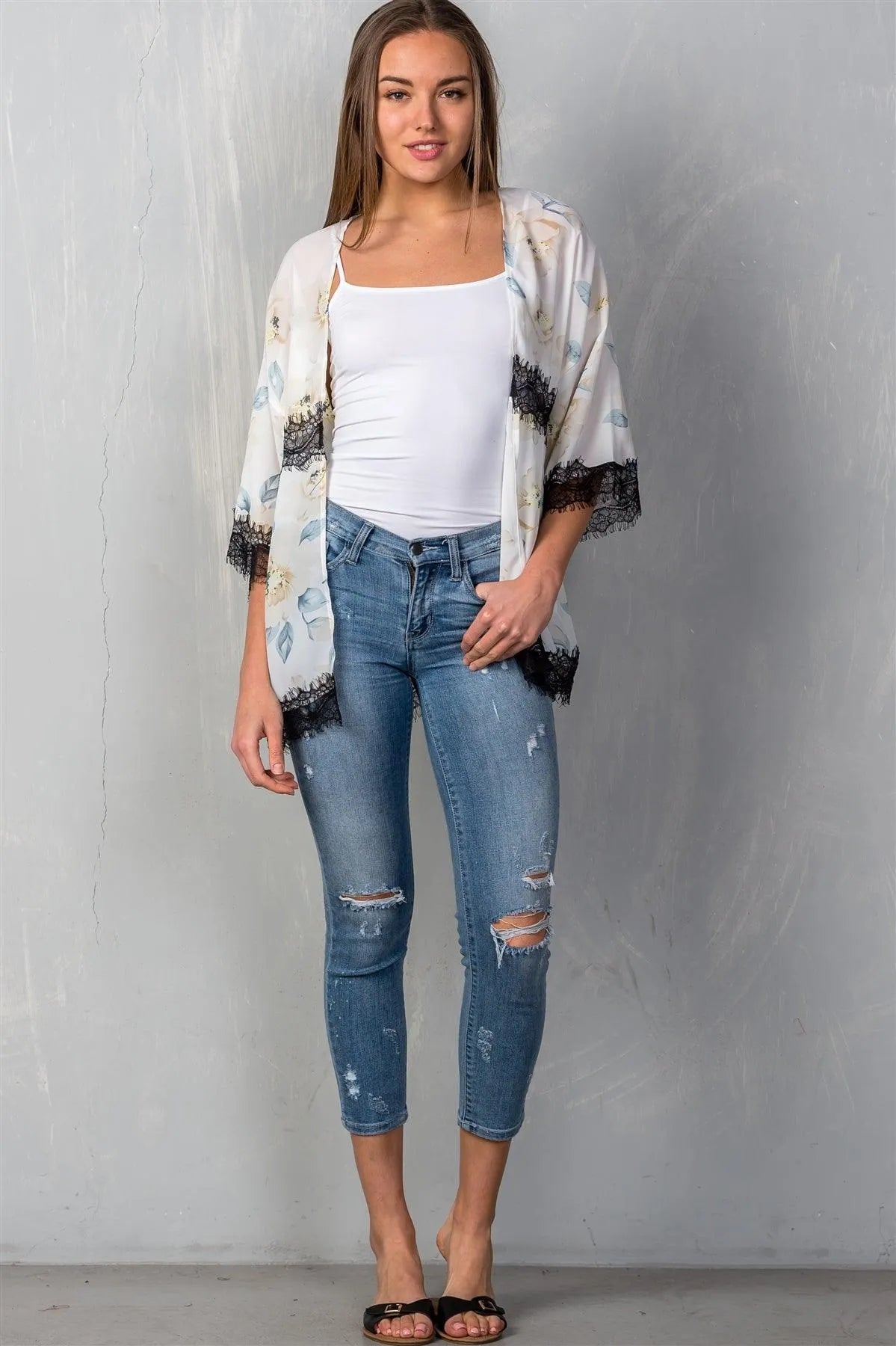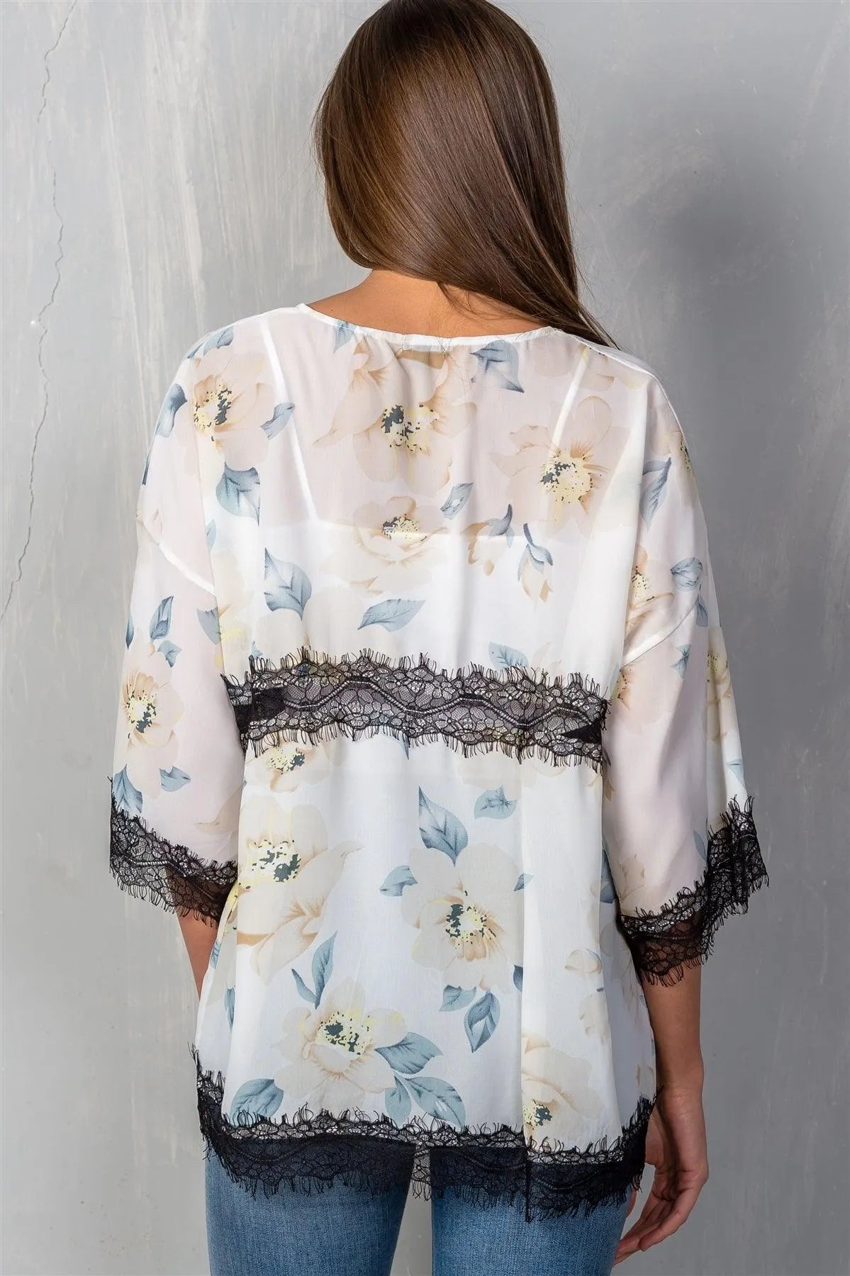 Cream Boho Floral Gardens Semi-Sheer Kimono /2-2-2