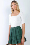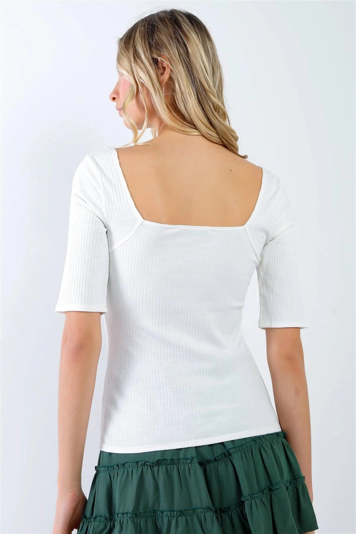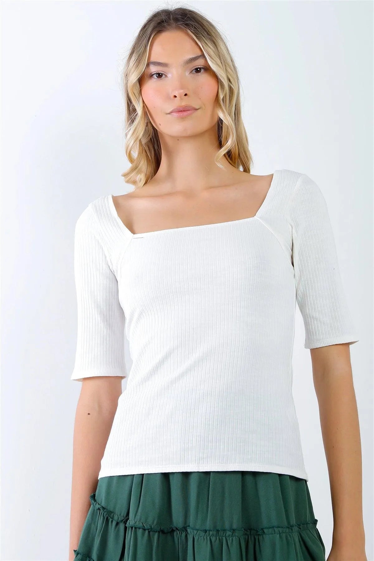 Cream Cotton Ribbed Square Neck Short Sleeve Top /1-3-2