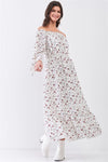 Cream Multi Floral Boho Off The Shoulder Ruffle Hem Maxi Dress