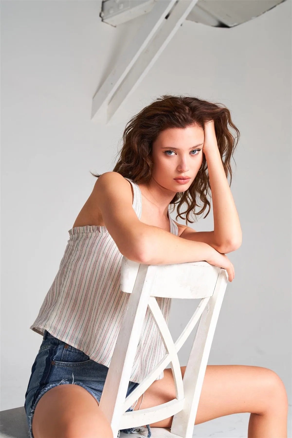 Victoria is 5'11" (Bust: 34", Waist: 25", Hips: 37"). Model is wearing size S.