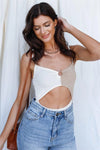 Cream & Taupe Ribbed O-Ring Detail Cut-Out Sleeveless Bodysuit /3-2-1