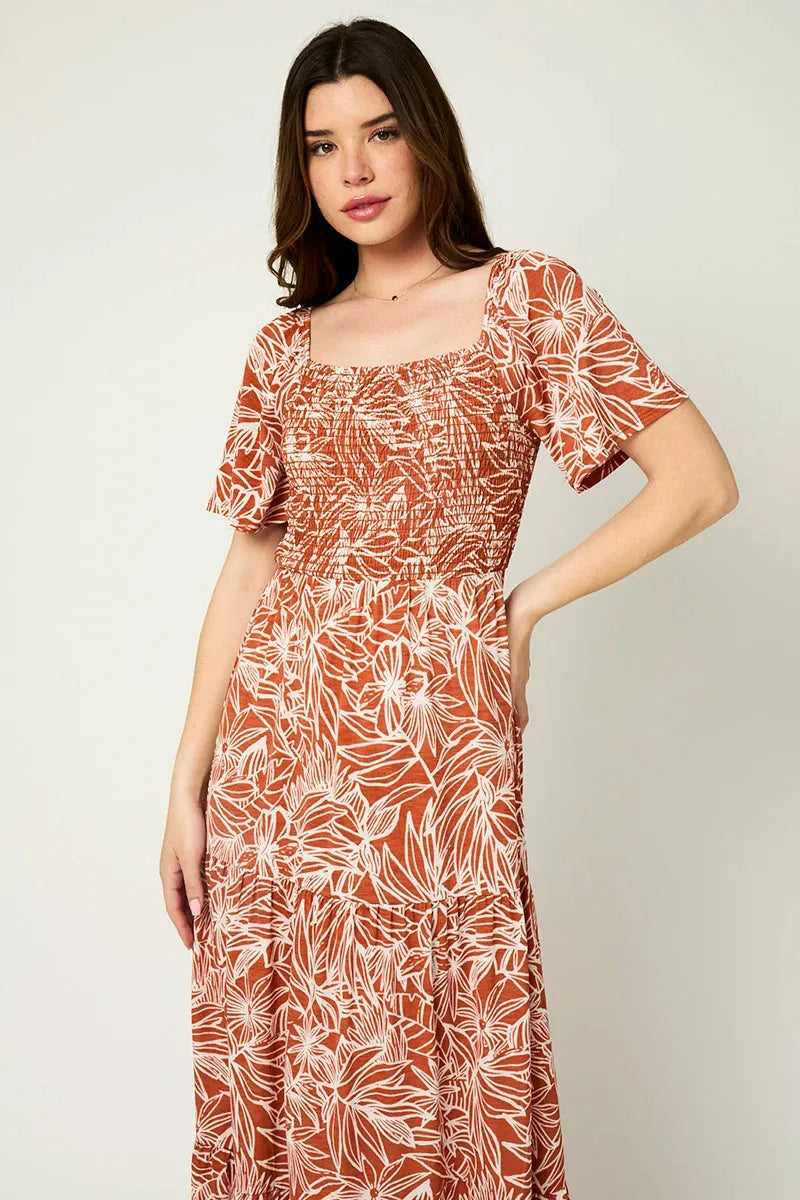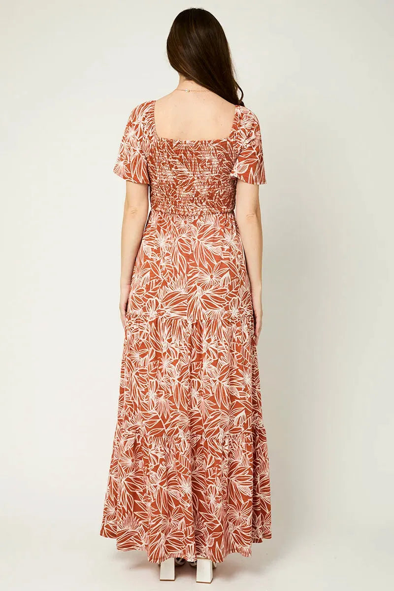 Experience the beauty of nature in our Floral Smocking Bust Tiered Hem Maxi Dress. Featuring a flattering square neckline and delicate smocking details, this dress is perfect for any occasion. The tiered hem adds a flirty touch, making you feel confident and feminine. Embrace your inner flower child in this stunning maxi dress!