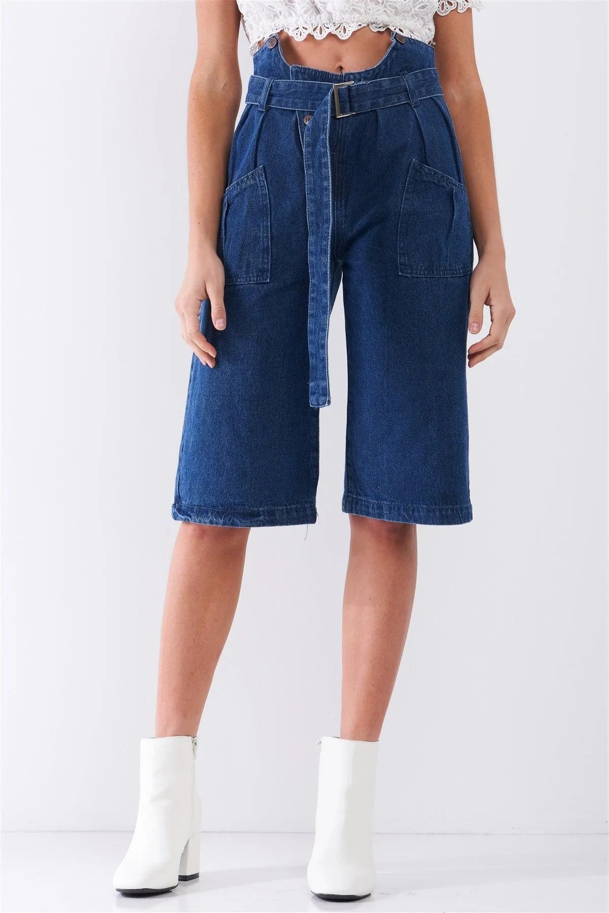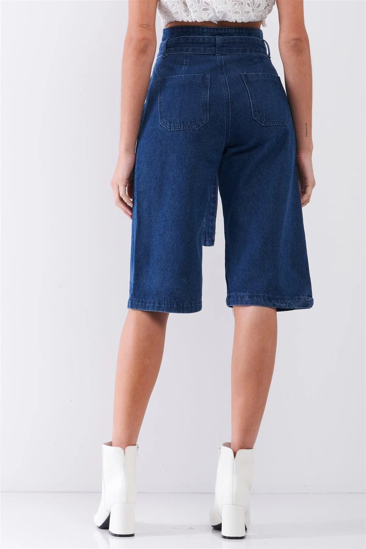 Elevate your wardrobe with our Denim Front Cut-Out High-Waist Buckle Self-Tie Belt Midi Flare Jean Pants. Designed for a modern silhouette, these pants feature a stylish front cut-out and a flattering high-waist design, complemented by a chic self-tie belt for a customizable fit. The midi flare cut adds a touch of sophistication, making them perfect for both casual outings and dressier occasions. Crafted from high-quality denim, these pants ensure comfort and durability while keeping you on-trend.
