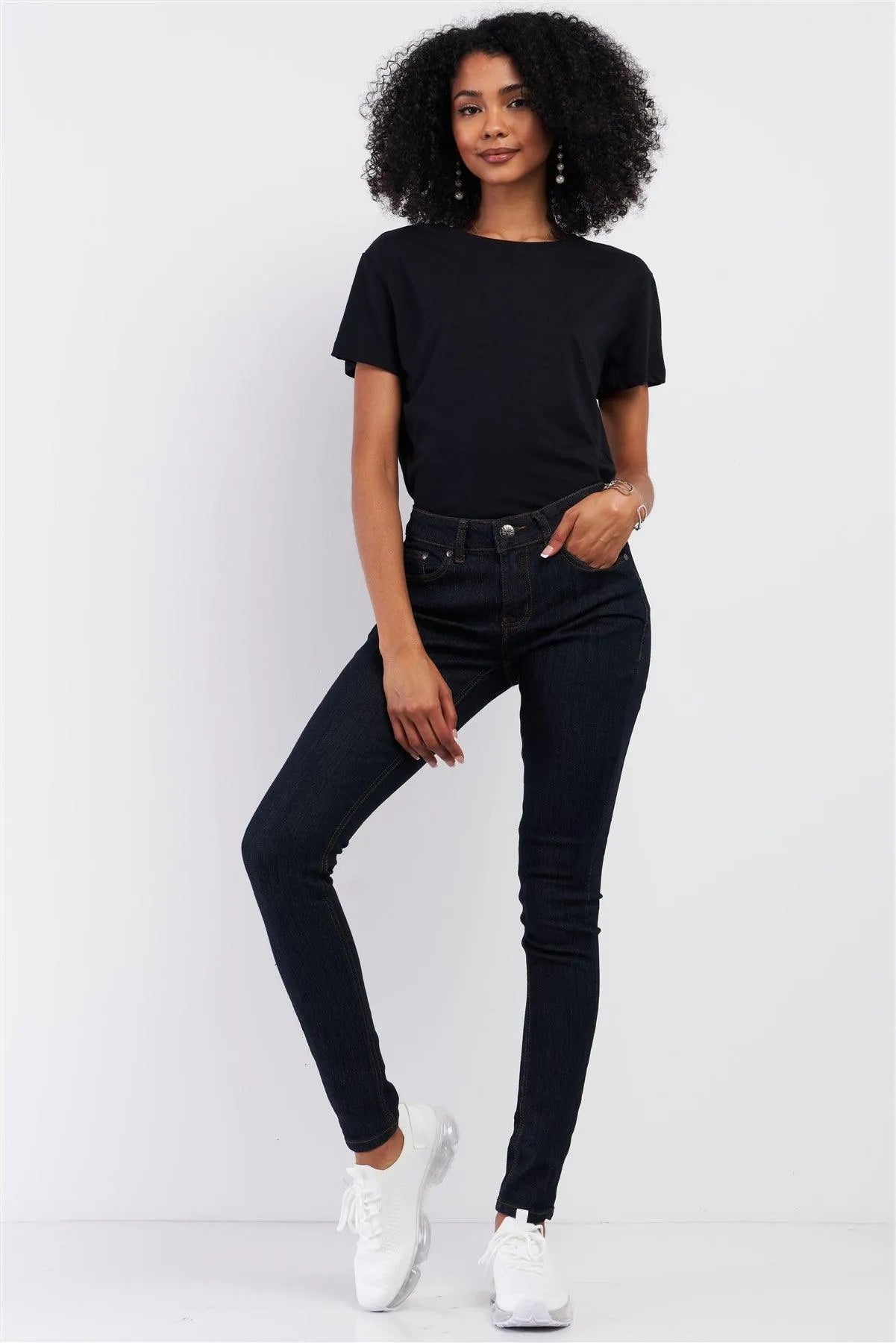 Dark Blue Low-Mid Rise Straight Cut Denim Jeans /1-1-1-1-2-2-2-1-1
