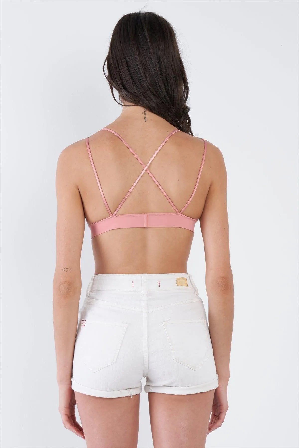 Dark Blush Pink Elastic Criss-Cross Back Strap Bra /4-2-1