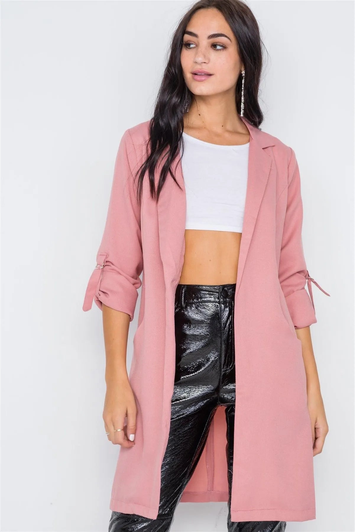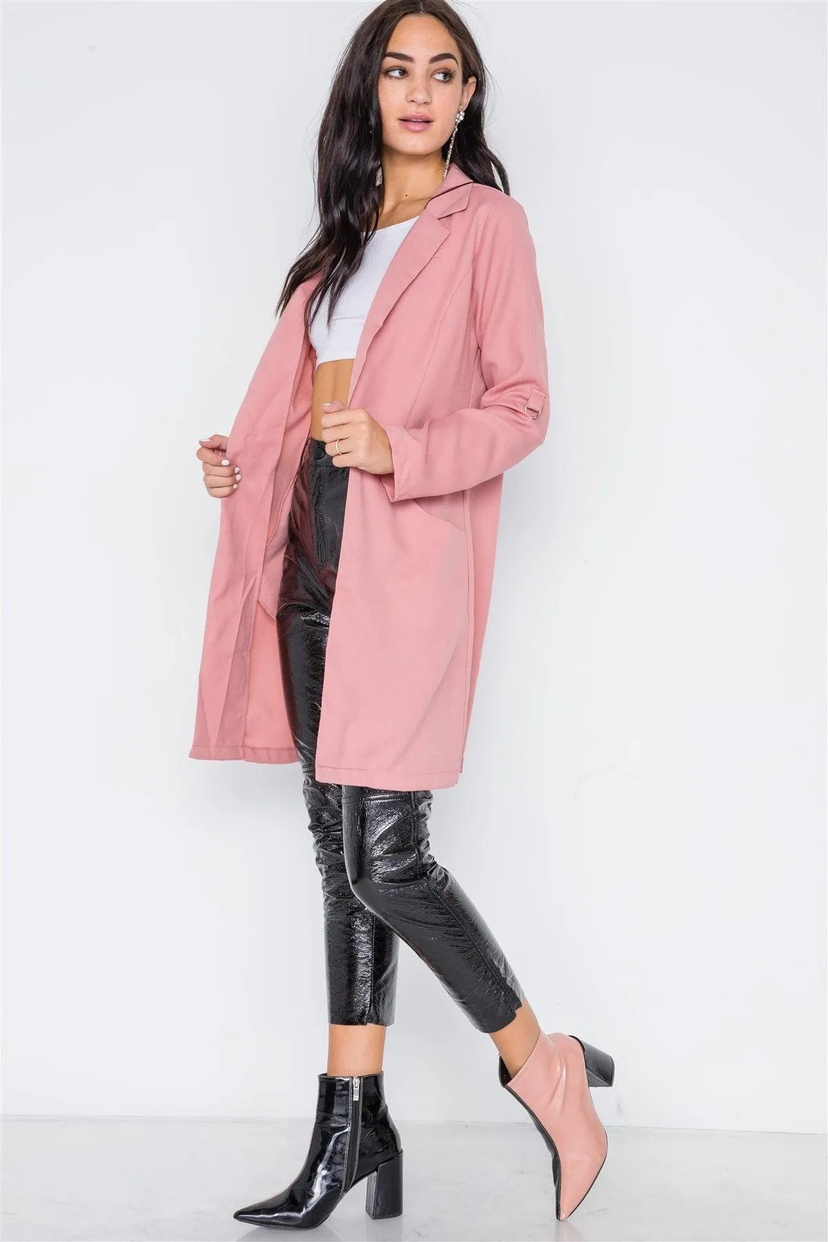 Dark Blush Solid Long Sleeve Longline Jacket /2-3-2