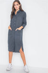 Striped Button Down Long Sleeve Collared Flowy Boutique Maxi Shirt DressVendor:Reveuse