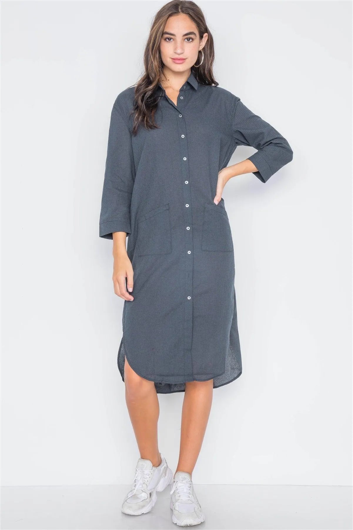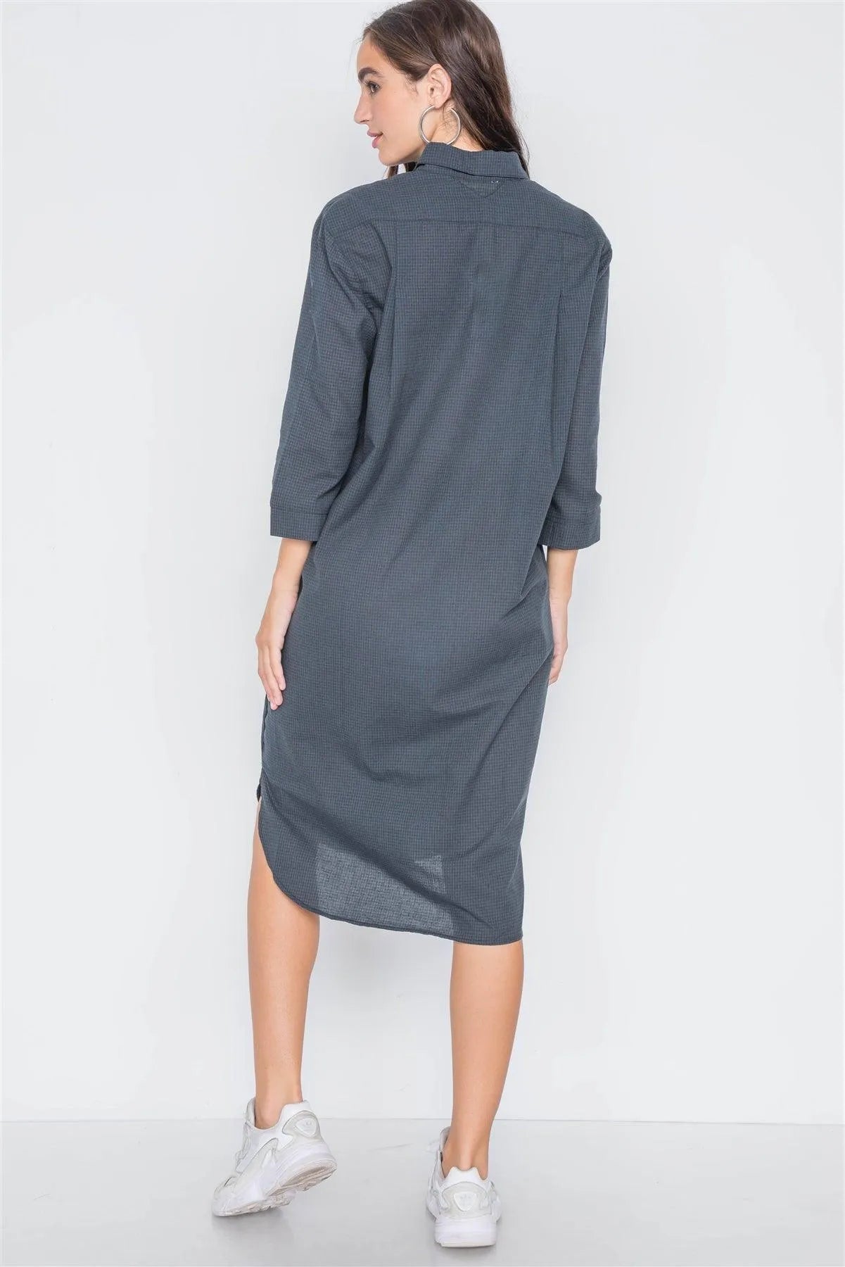Dark Emerald Gingham Button Down Shirt Dress /3-2-1