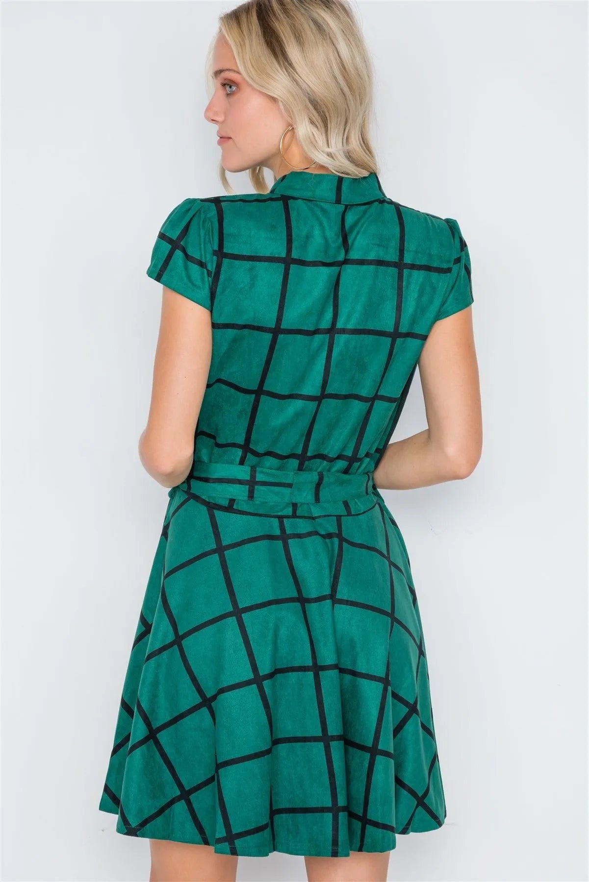 Dark Green Check A-Line Faux Suede Mini Dress /2-2