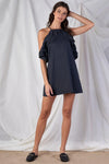 Solid Dark Grey Loose Fit Sleeveless Off-The-Shoulder Massive Triple Ruffle Hem Lined Mini Dress /1-1-2-1
