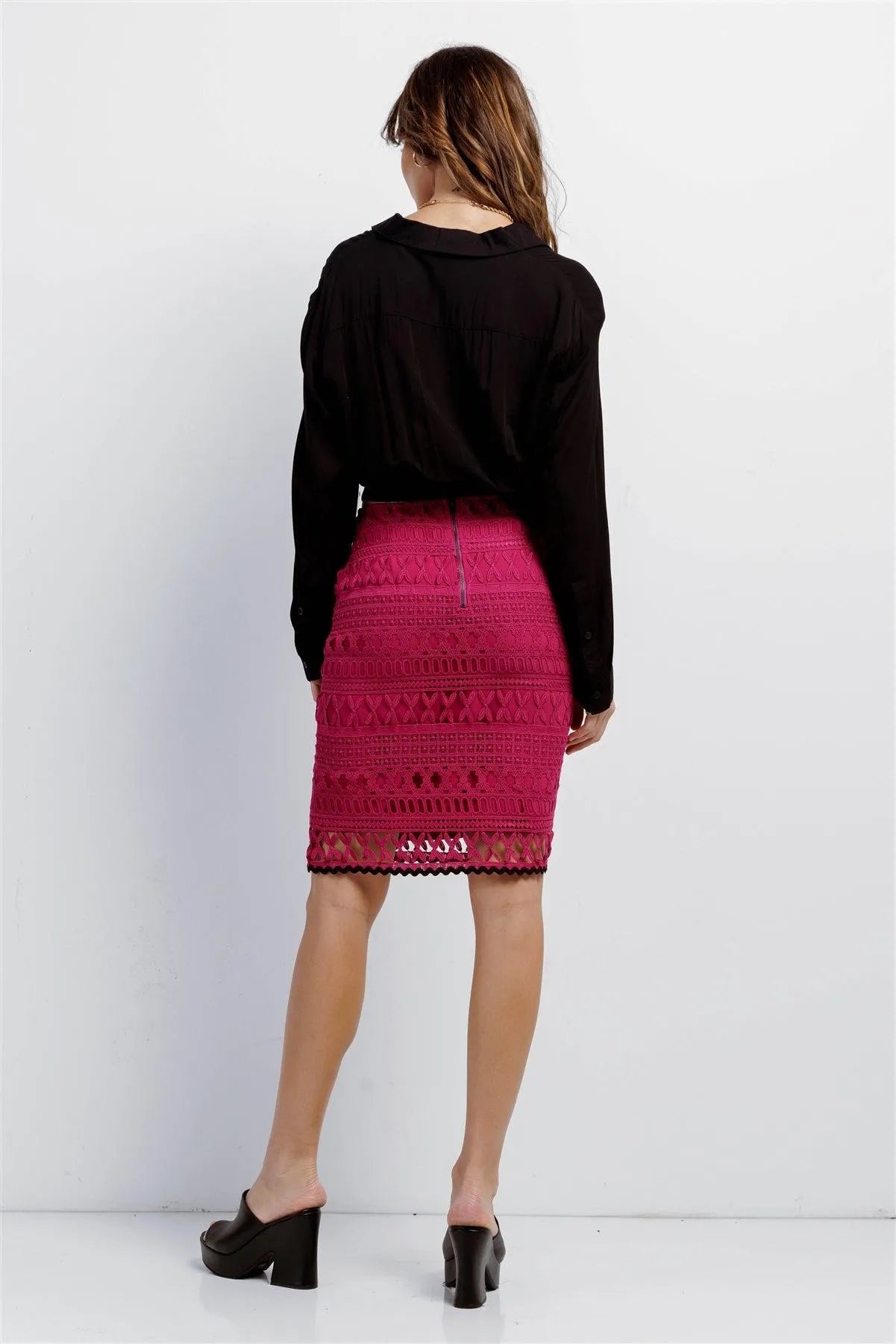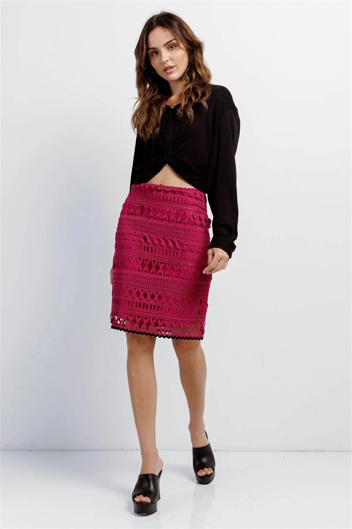 Dark Magenta Crochet High Waist Pencil Mini Skirt /1-2-2-1