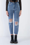 Denim Blue High-Waist Distressed Raw Hem Jeans /3-1-1