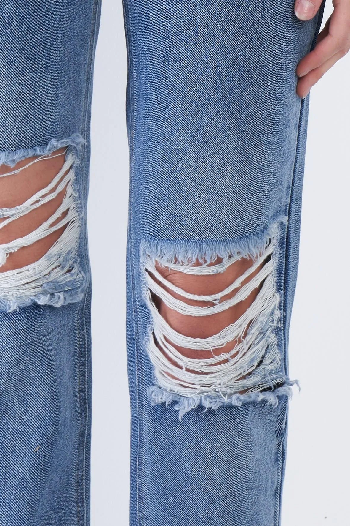 High Waisted Distressed Knee Ripped Wide Leg Denim JeansVendor:Hammer Collection