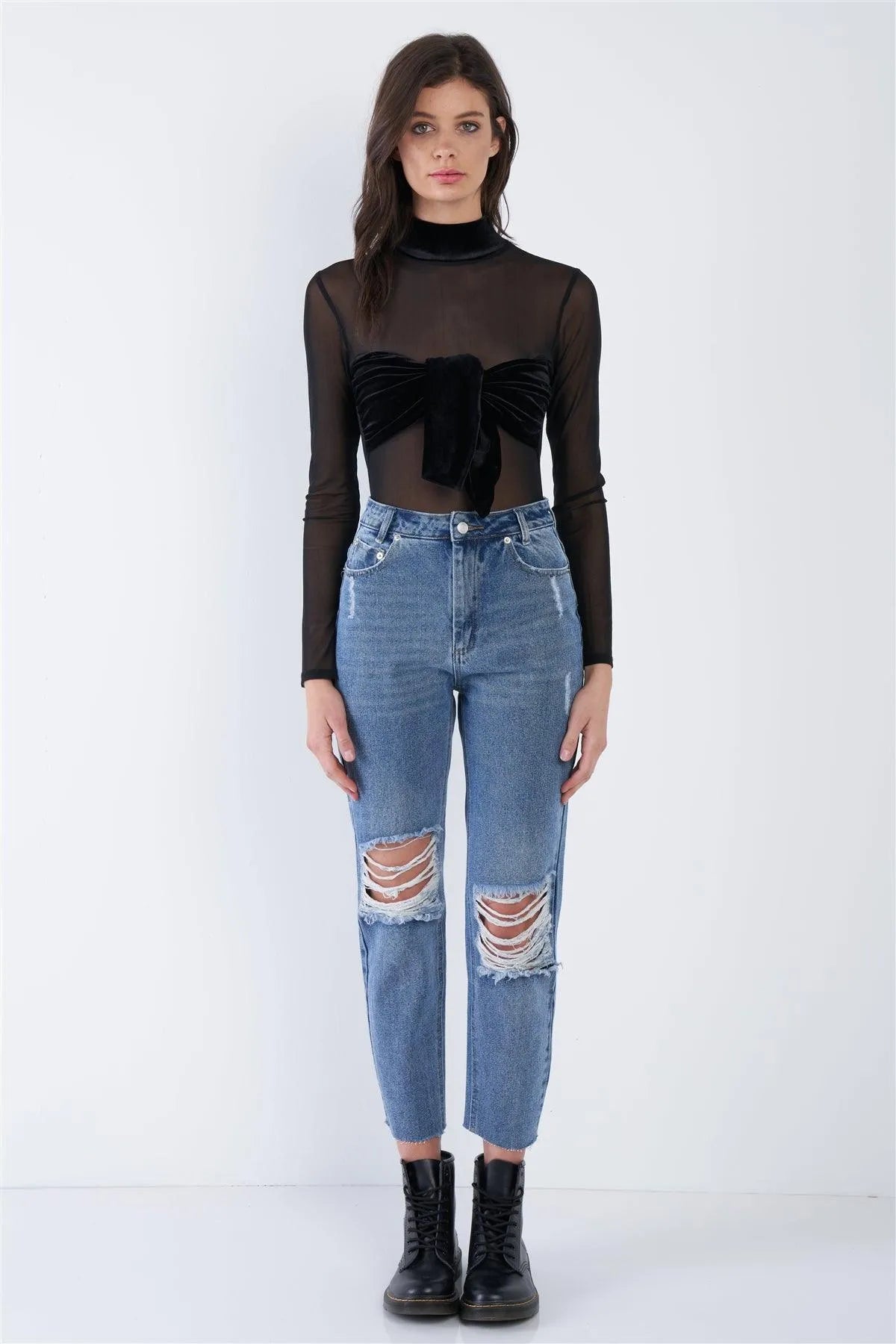 Cotton High Waist Distressed Washed JeansVendor:Le Lis