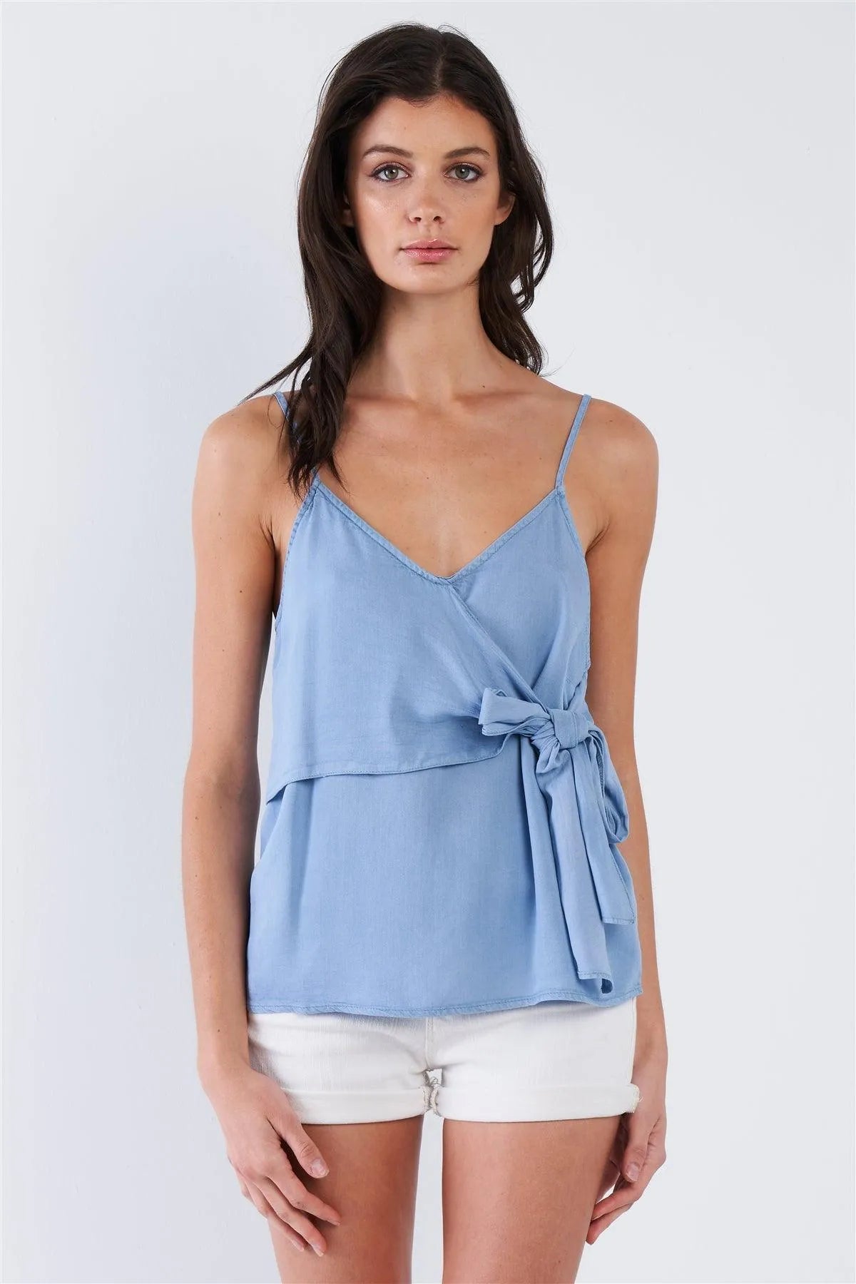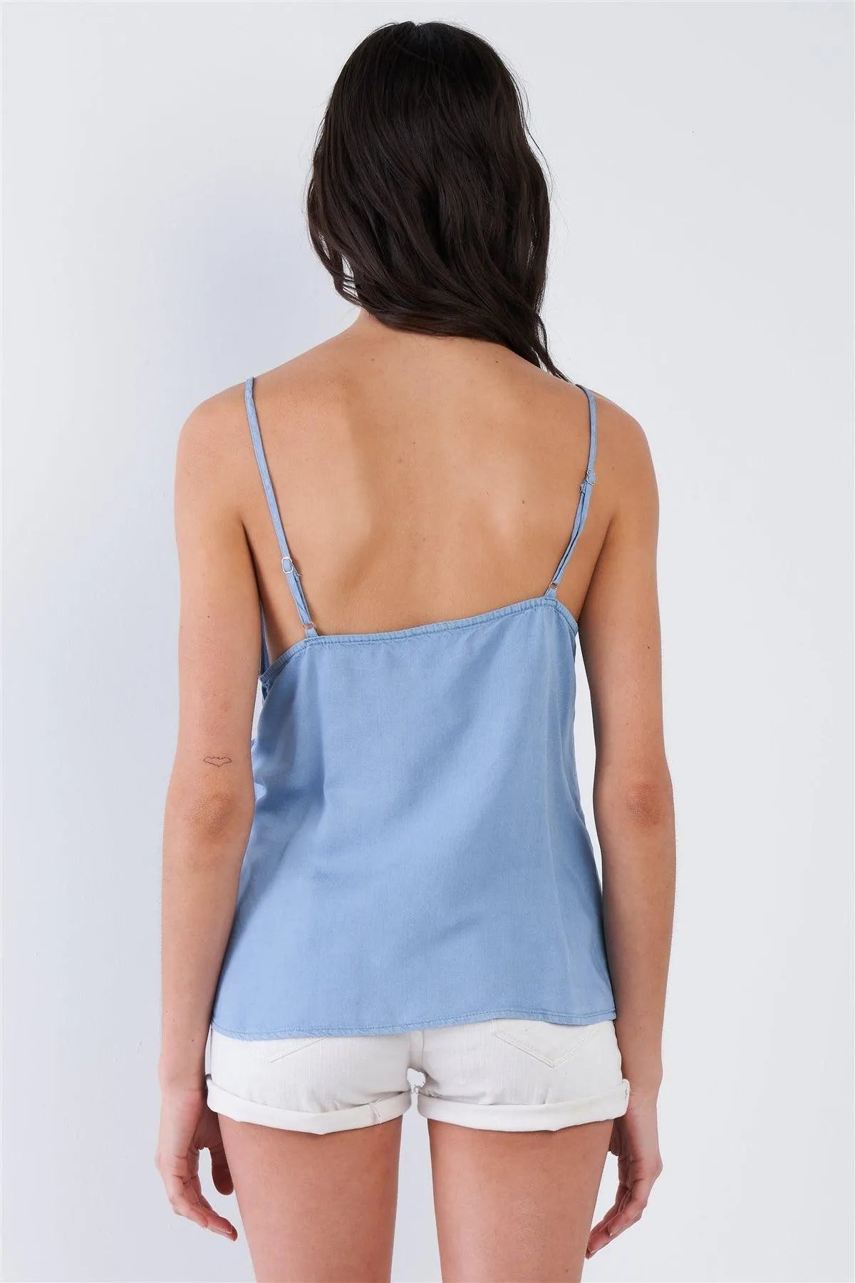 Denim Blue V-Neck Front Bow Adjustable Cami Top /2-2-1