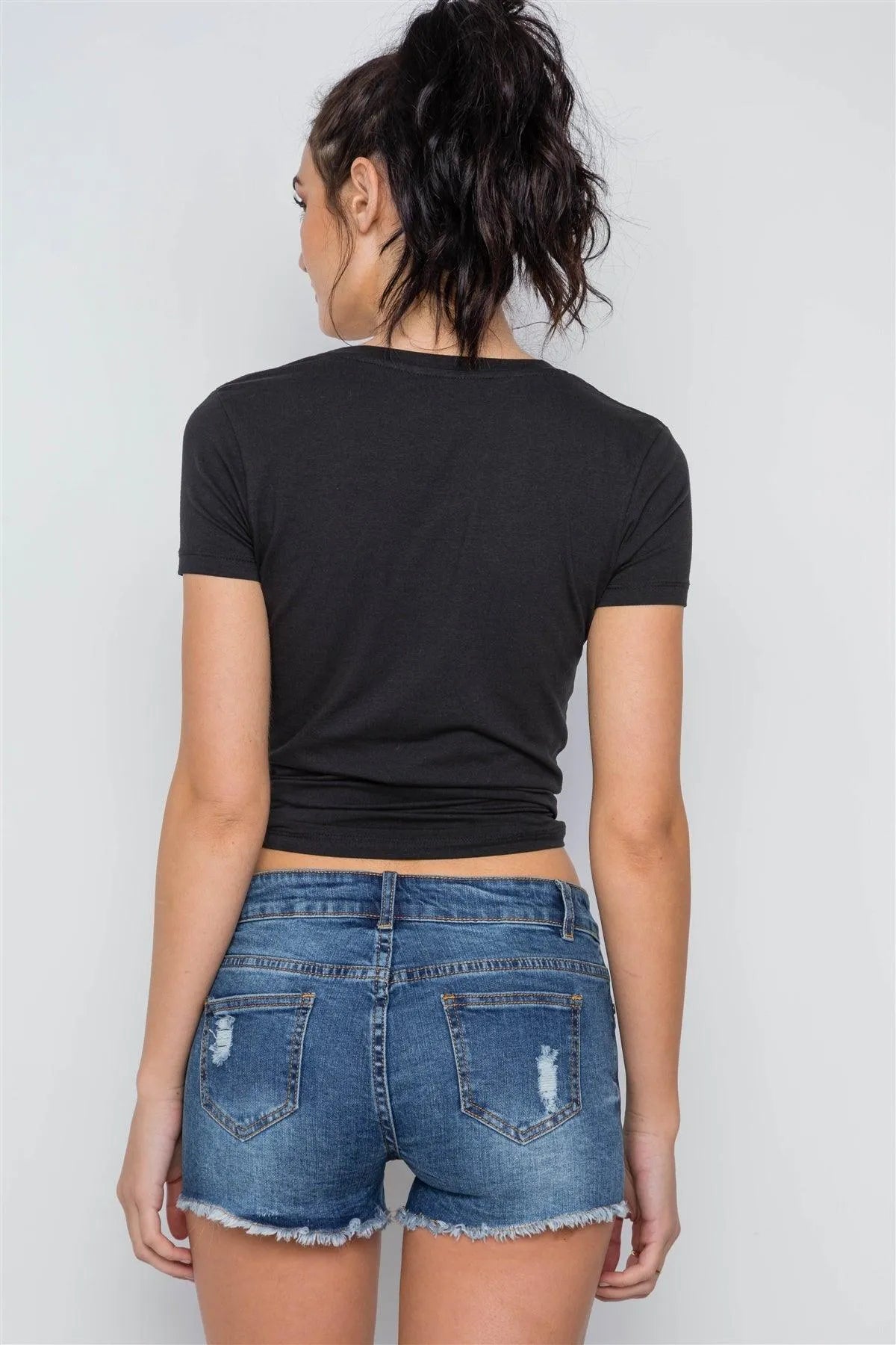 High Waisted Distressed Bermuda Cutout Denim ShortsVendor:Litz La